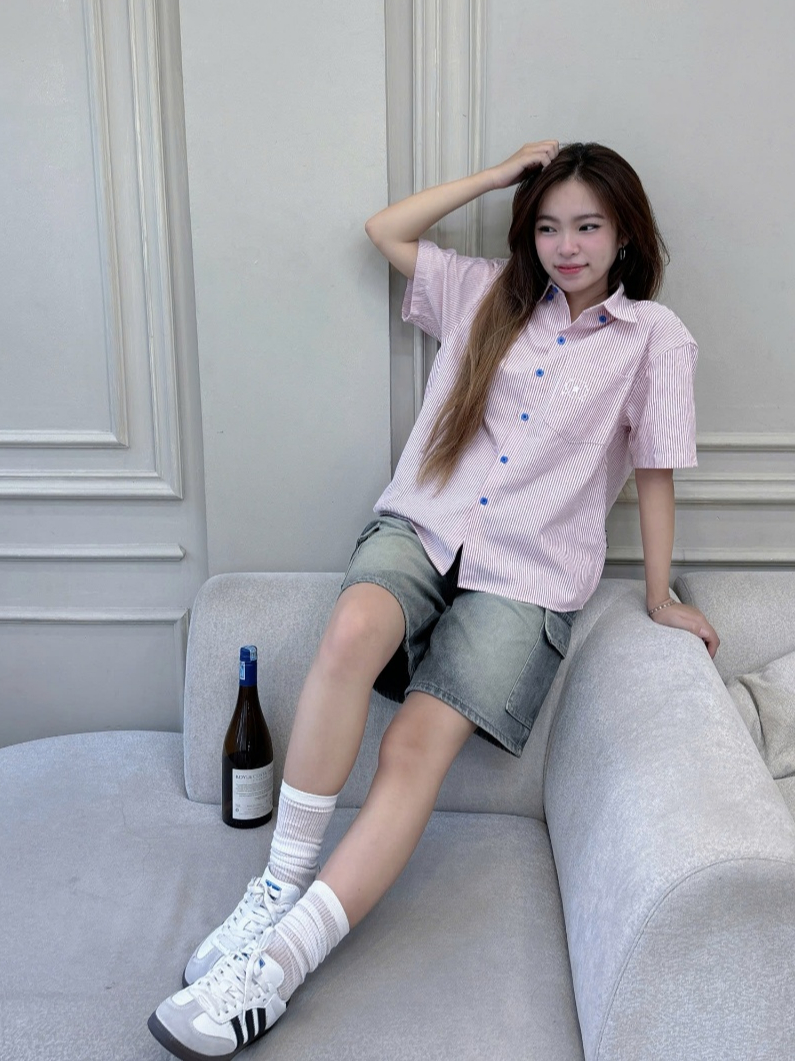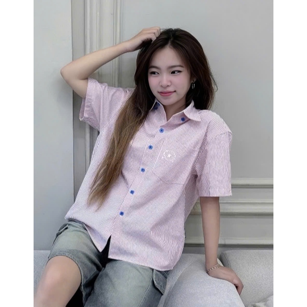 Áo Sơ Mi Boxy Kẻ Sọc 𝑩𝒚𝒄𝒂𝒎𝒄𝒂𝒎 Oxford Cúc Màu Đỏ/Xanh Form Unisex Nam Nữ AMN048