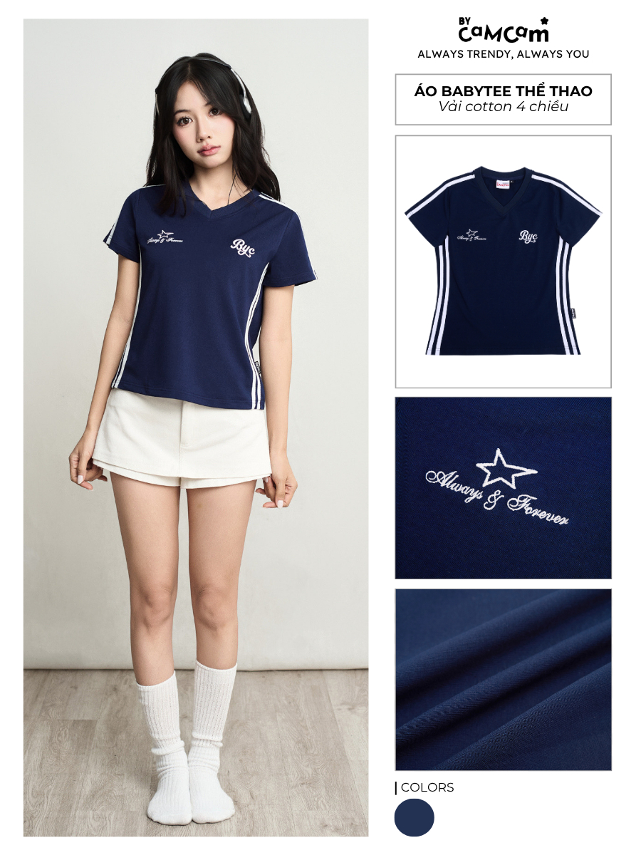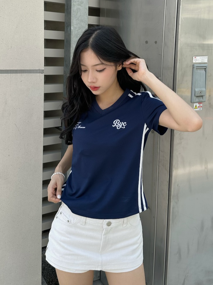 Áo Thun Babytee Phối Line Thể Thao 2-Bar 𝑩𝒚𝒄𝒂𝒎𝒄𝒂𝒎 Phong Cách Đường Phố Cho Nữ ABN242