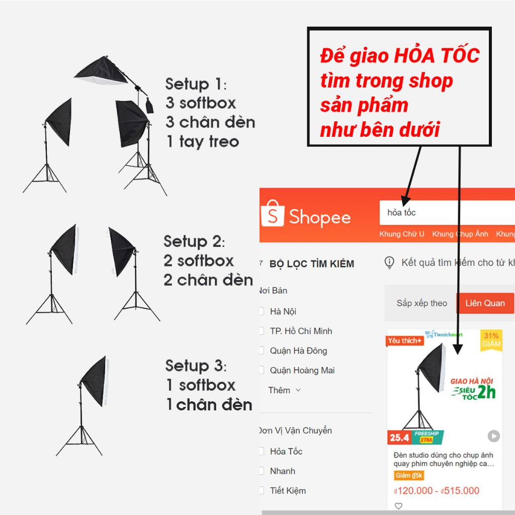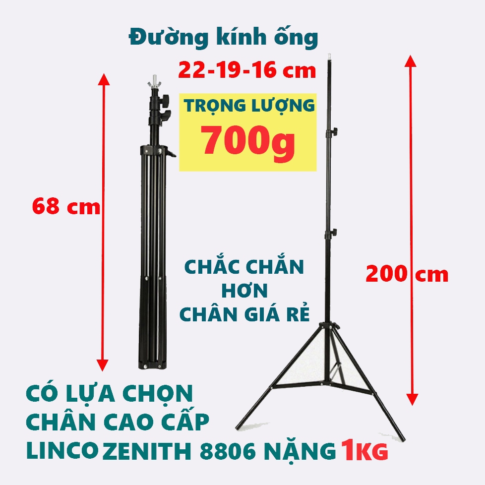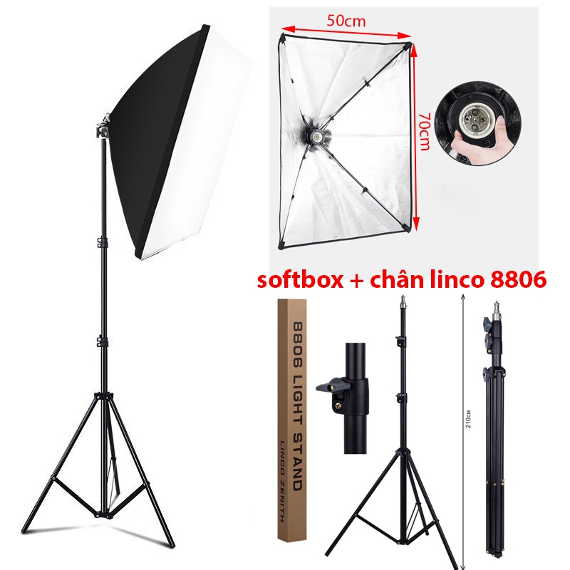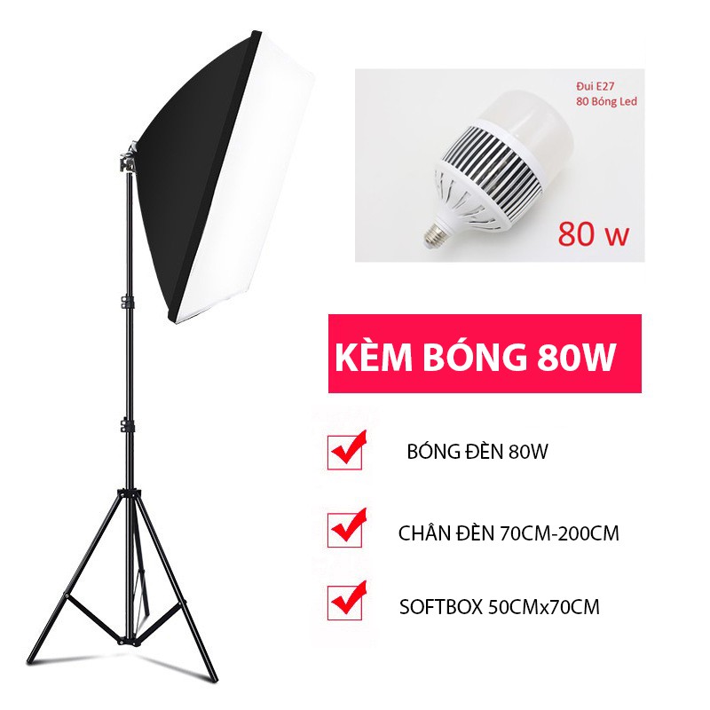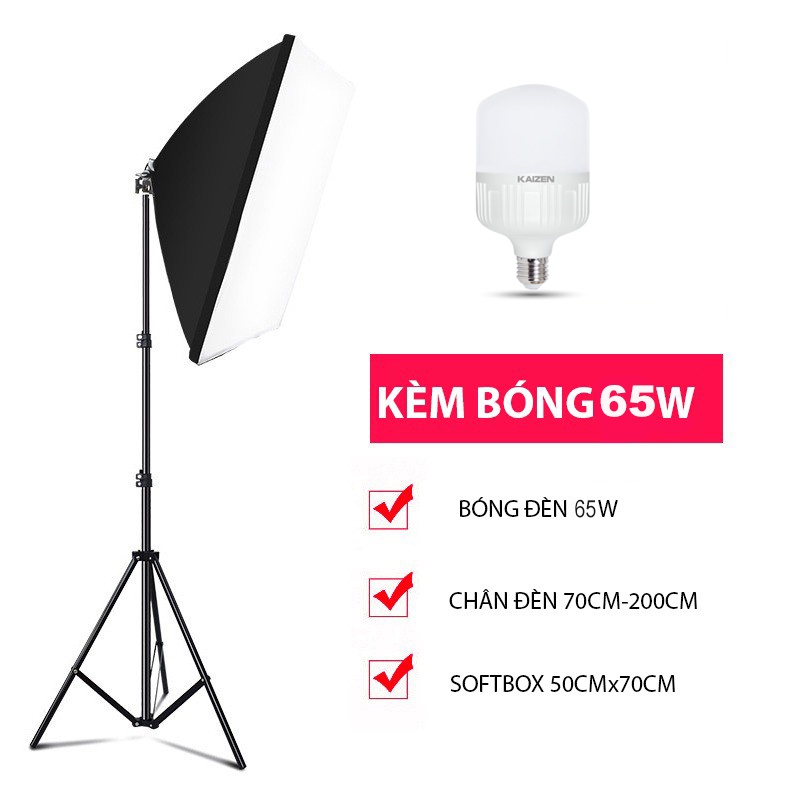 Bộ đèn studio chụp ảnh, quay phim, Livestream chuyên nghiệp, cao 2m softbox 50x70cm