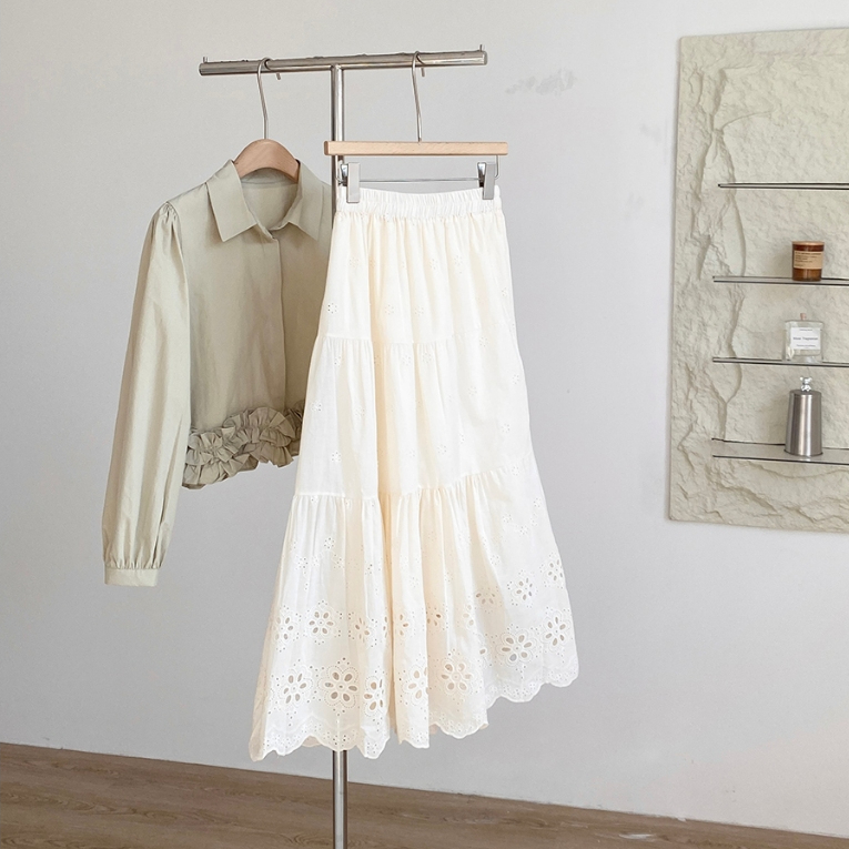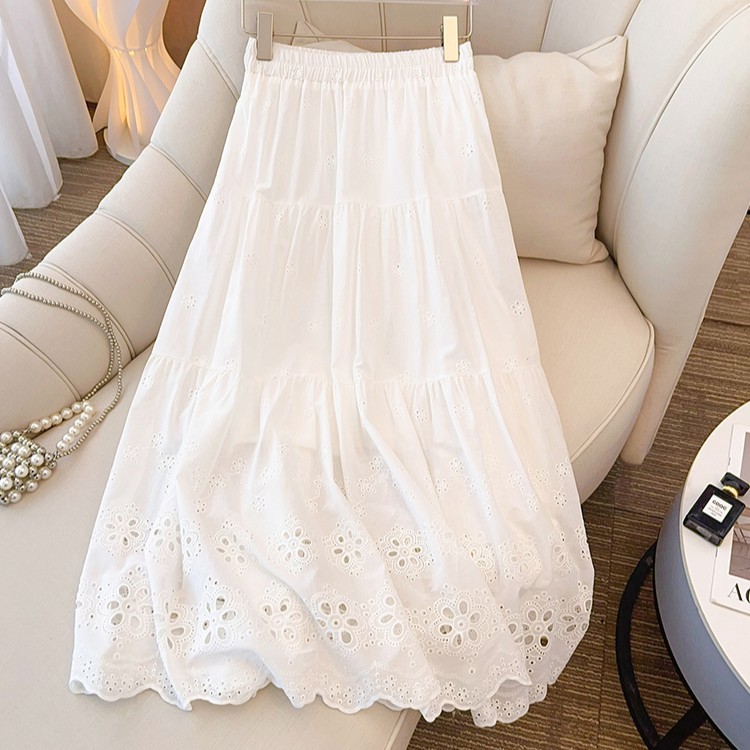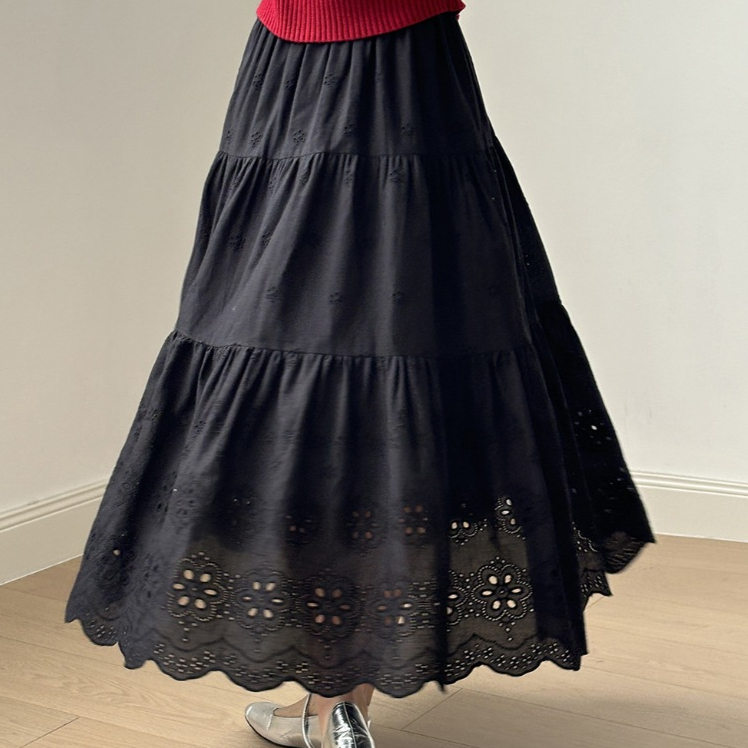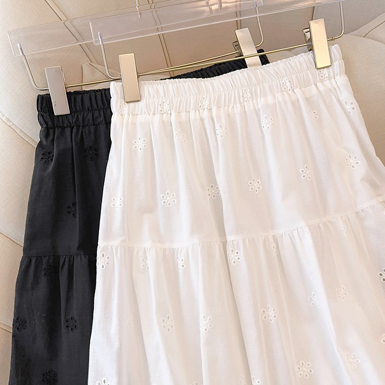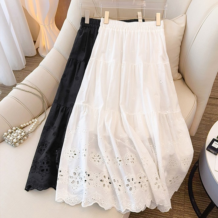Chân Váy Midi Dáng Dài Hai Lớp Cạp Chun Chất Vải Thô Boi Thêu Hoa Thời Trang Talene CV NU 075V3