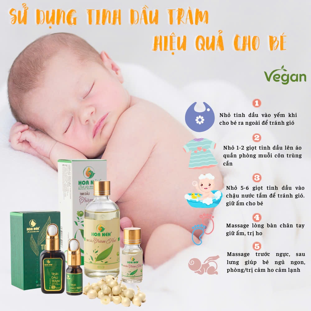Tinh dầu Tràm Huế nguyên chất 100ml - 30ml - Chuẩn VietGap - Hoa Nén - giữ ấm an toàn bé sơ sinh