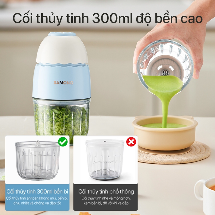 (Cao Cấp- 8 lưỡi) Máy xay ăn dặm 0.3L Samono SW-MC200S cho bé, 200W, cối thủy tinh, xay thịt nhuyễn mịn -BH 1 năm