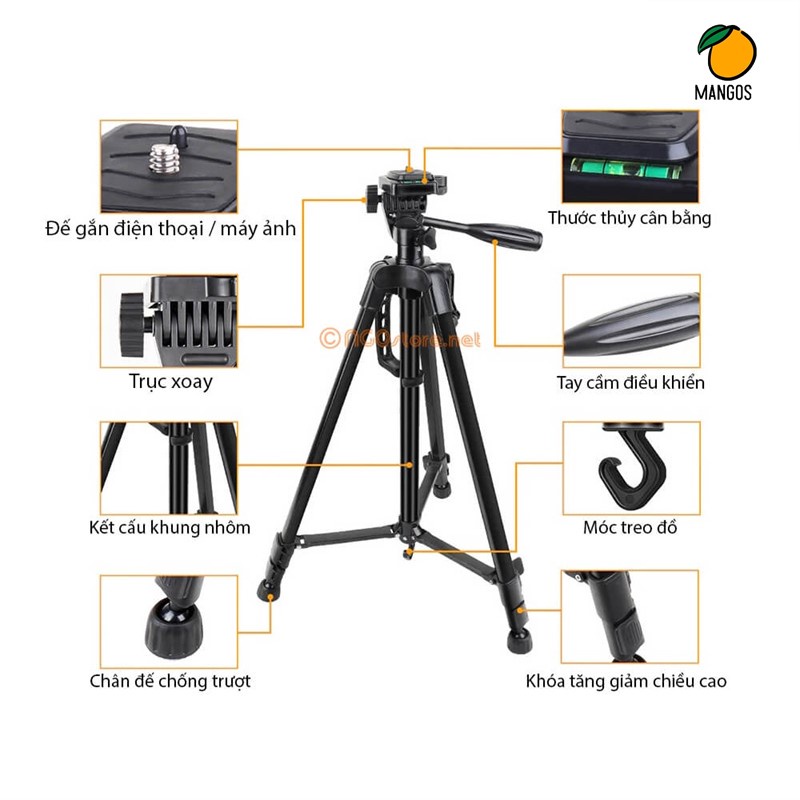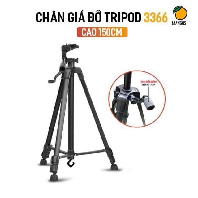 Chân Giá Đỡ Điện Thoại Máy Ảnh 3 Chân Tripod 3366 Có Tay Cầm Quay Phim Kết Hợp Remote Chụp Ảnh Từ Xa - MangoOvil