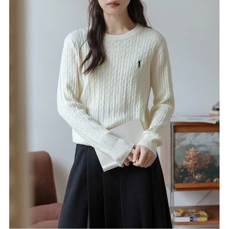 Áo Len Nữ Dệt Kim, Áo Sweater Dệt Kim Vặn Xoắn, Áo Len Cổ Tròn Tay Dài Màu Trơn Hàng Loại 1