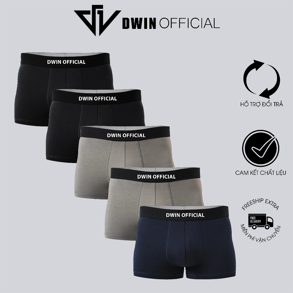Combo 5 quần lót nam DWIN sịp đùi kháng khuẩn cao cấp boxer tam giác vải thun lạnh co dãn 4 chiều SP02A