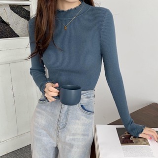 Áo Len Tăm Cổ Sóng Kiểu Dáng ôm Body Siêu Co Dãn Hàng QCCC Tay Dài Dễ Phối Đồ Phong Cách Hàn Quốc
