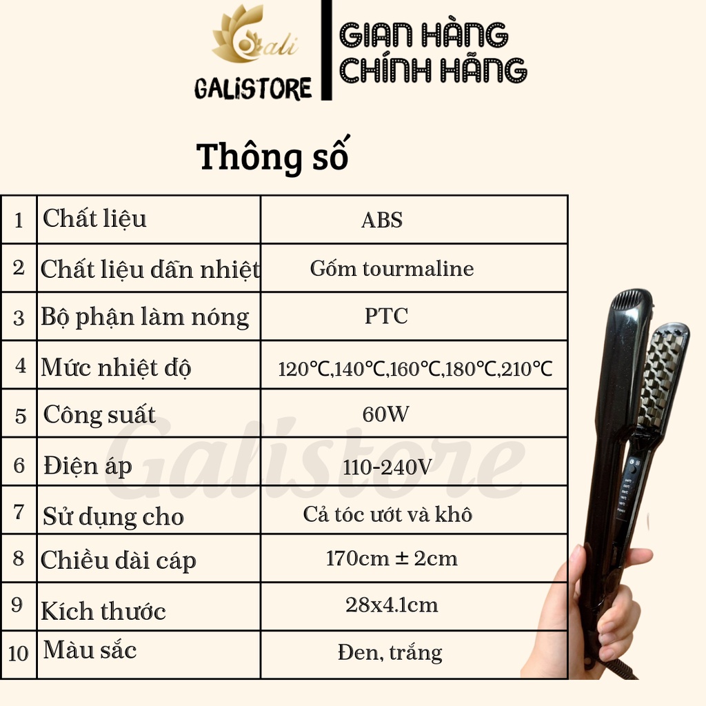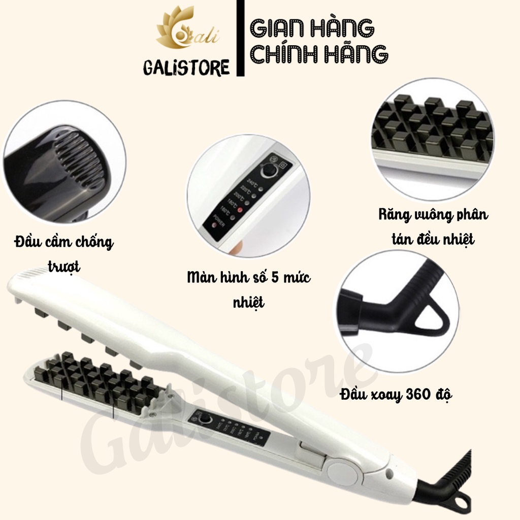 Máy bấm xù dập phồng tóc chân vuông cao cấp 2in1 Hàn Quốc 5 mức chỉnh nhiệt tạo kiểu tóc cho cả tóc Khô/ Ướt-Galistore