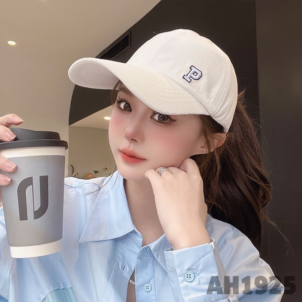 Mũ lưỡi trai nửa đầu thời trang nam nữ thêu chữ P chất vải kaki đẹp AH1925