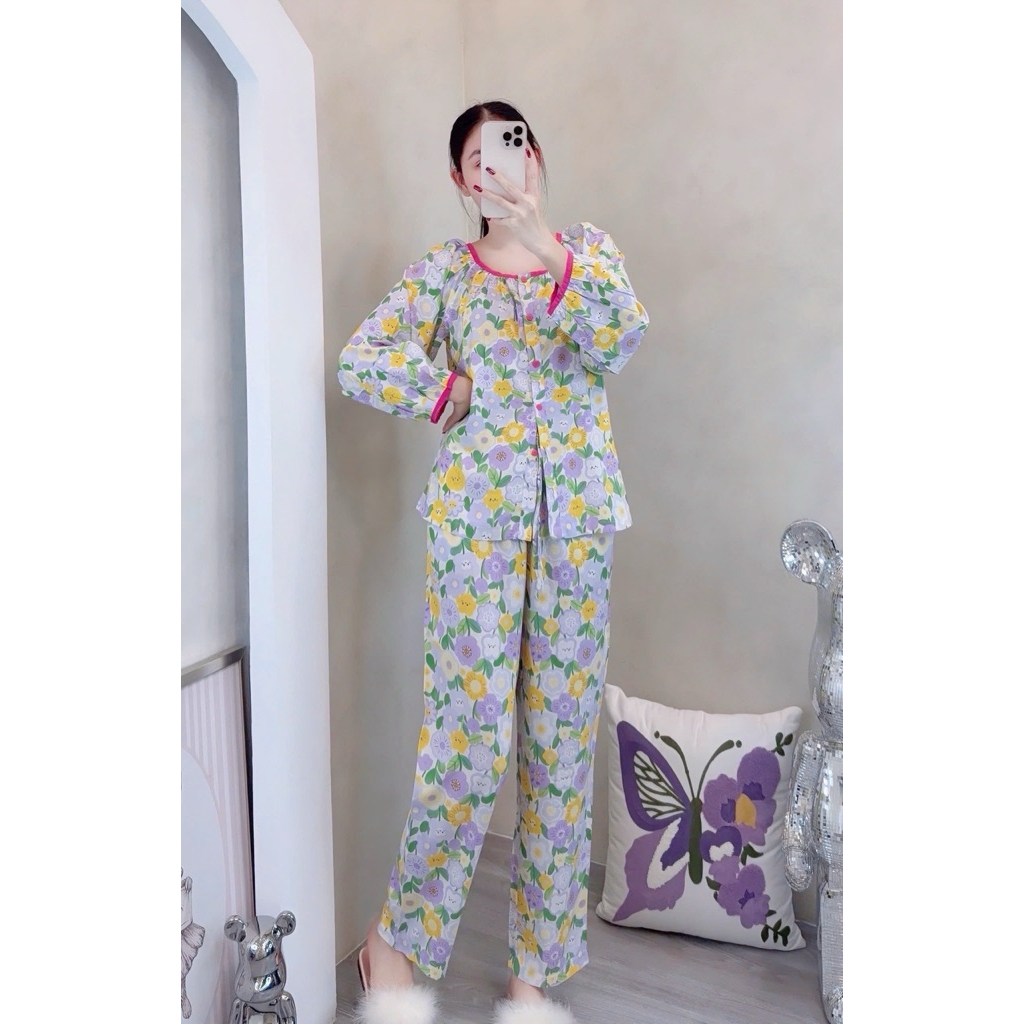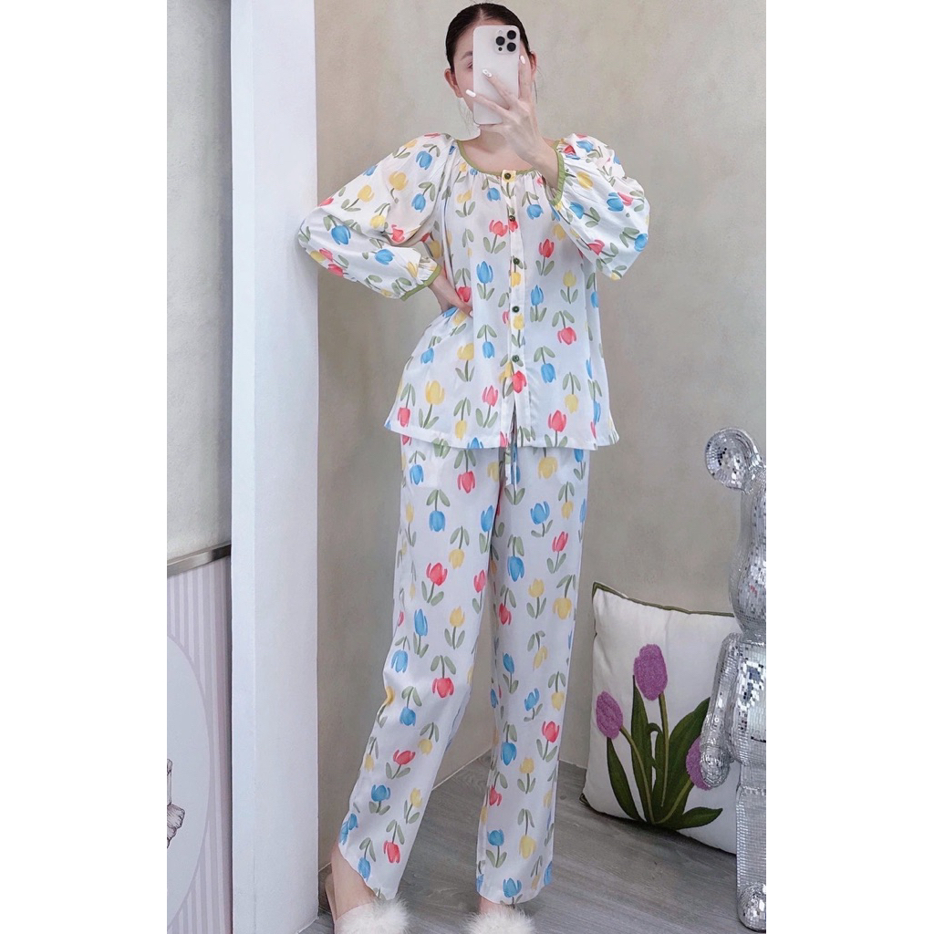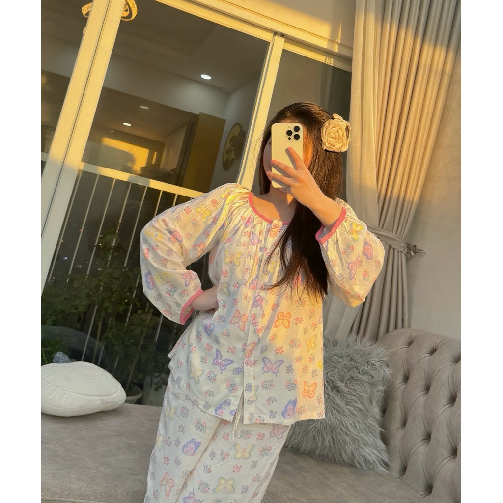 Đồ bộ tole nữ bộ lanh mặc nhà VNXK F21 tay bồng Phom rộng nút cài tiểu thư,hàng thiết kế CACA96 siêu xinh mềm mỏng nhẹ.