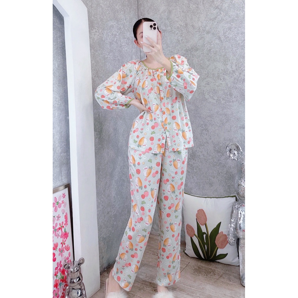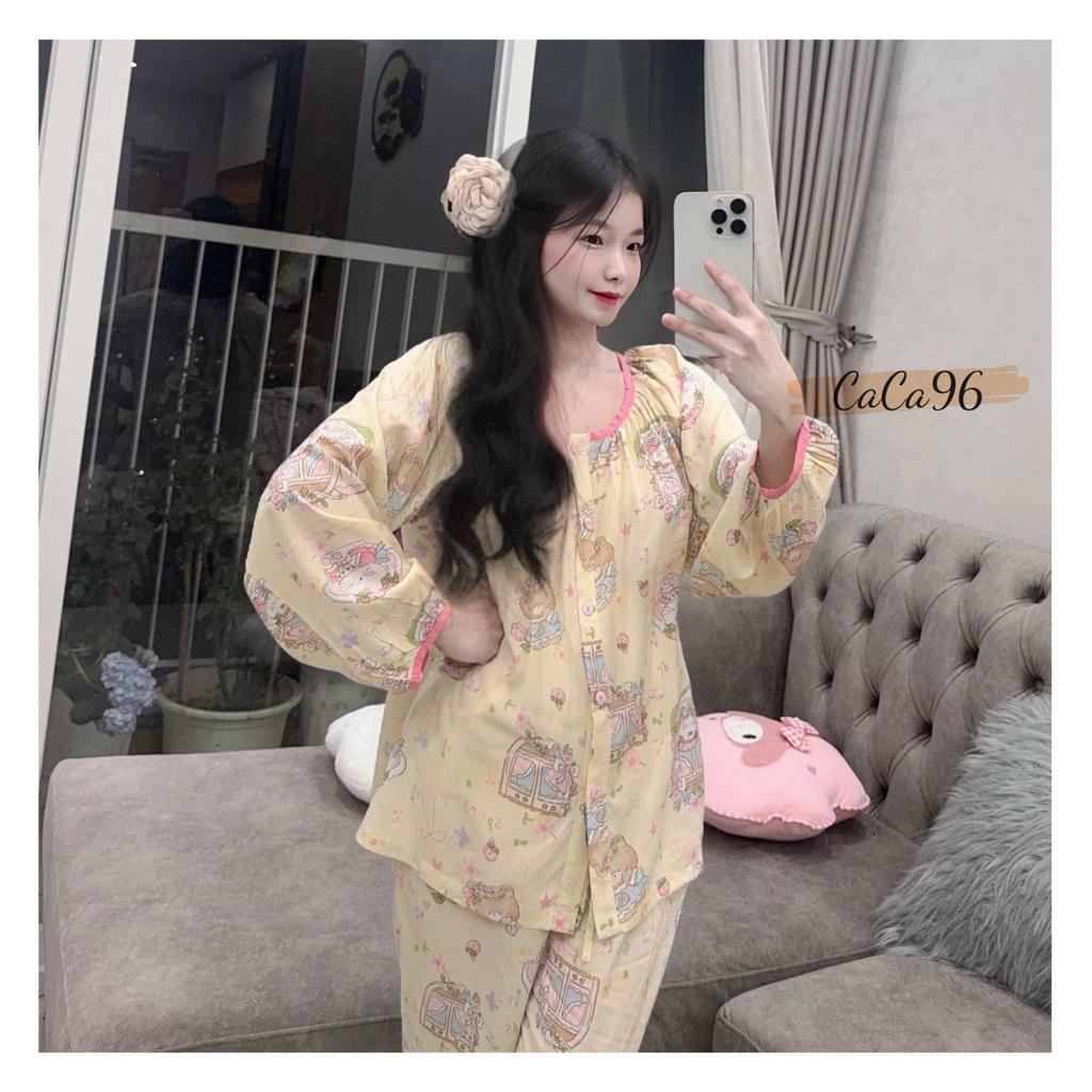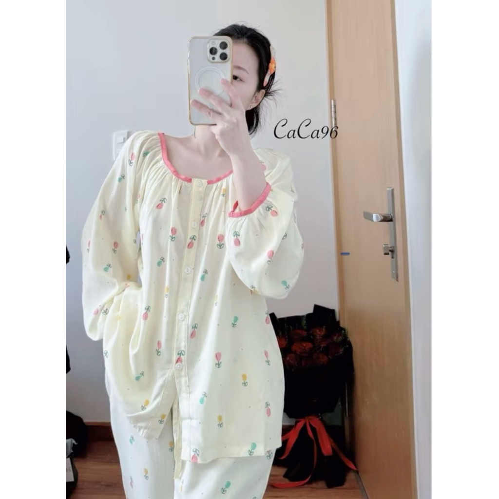 Đồ bộ tole nữ bộ lanh mặc nhà VNXK F21 tay bồng Phom rộng nút cài tiểu thư,hàng thiết kế CACA96 siêu xinh mềm mỏng nhẹ.