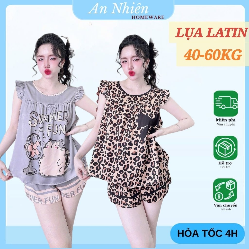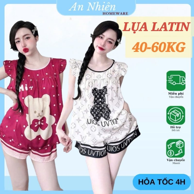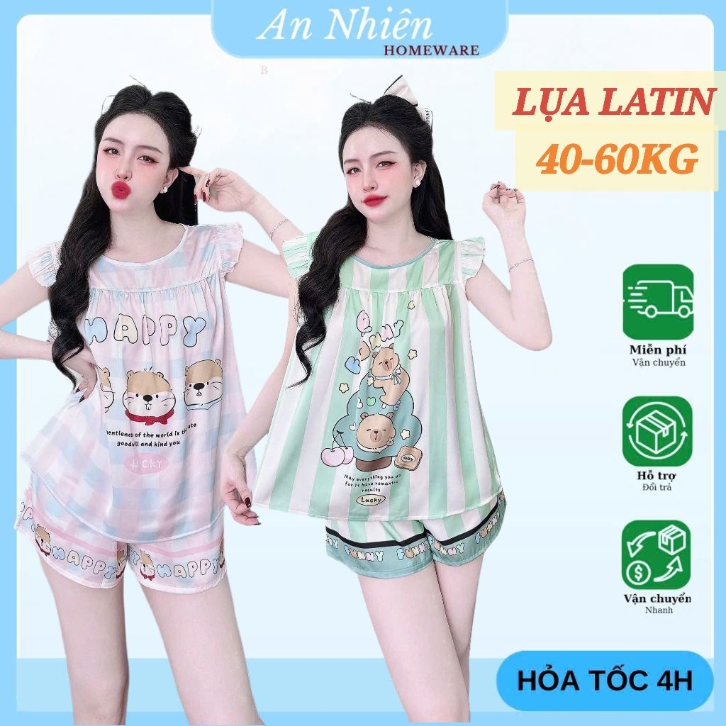 [Freesize 40-60kg] Bộ đồ ngủ tay cánh tiên cổ tròn quần đùi lụa Latin mềm mịn mát họa tiết dễ thương