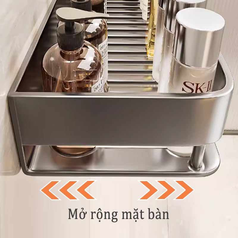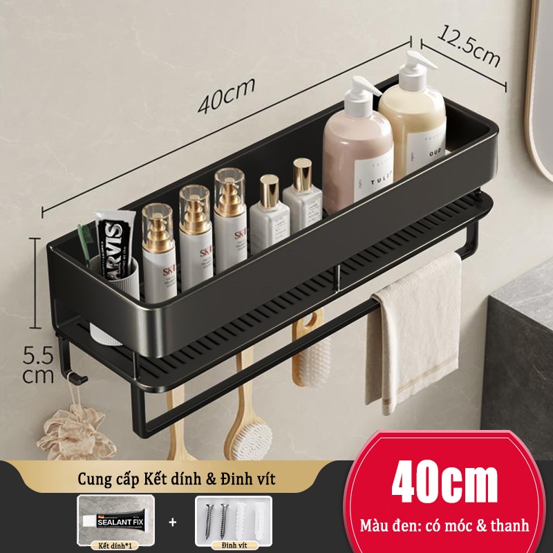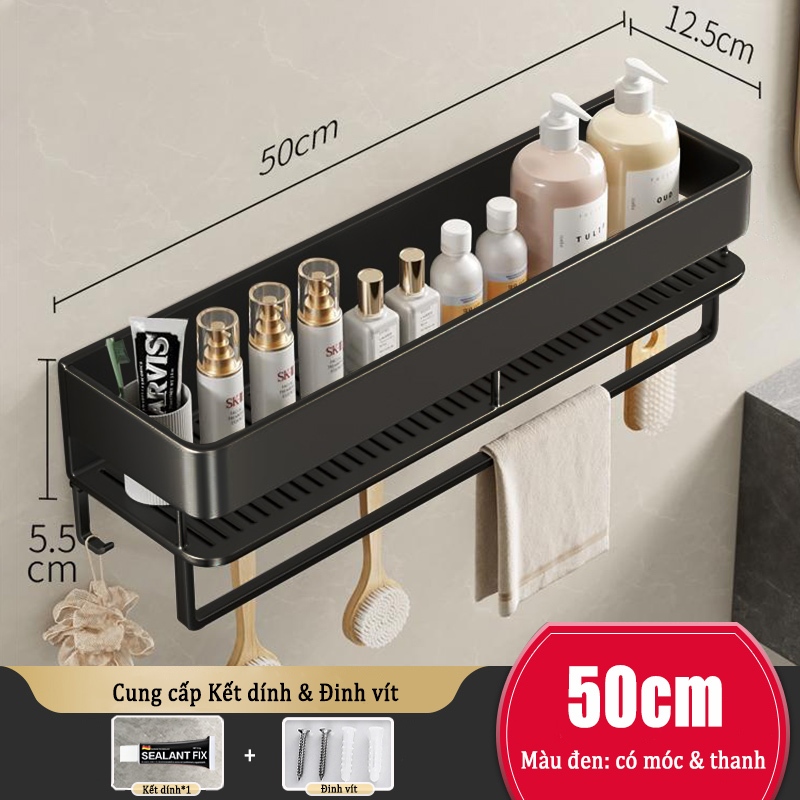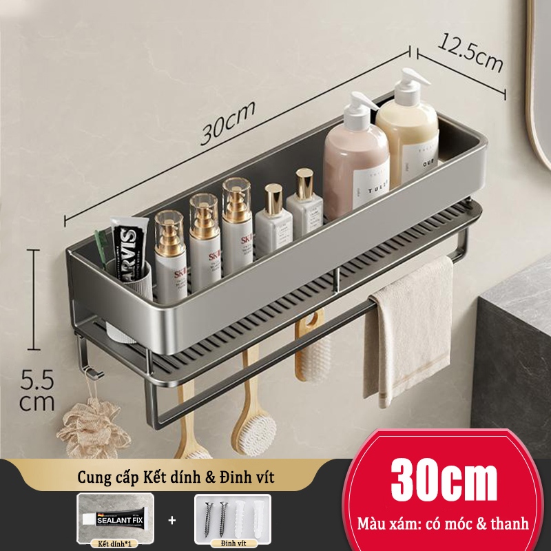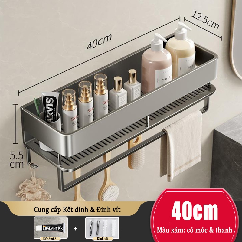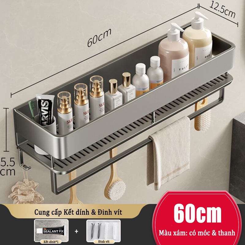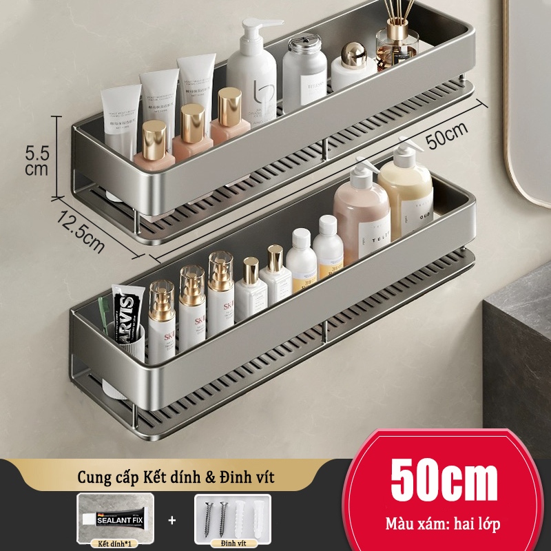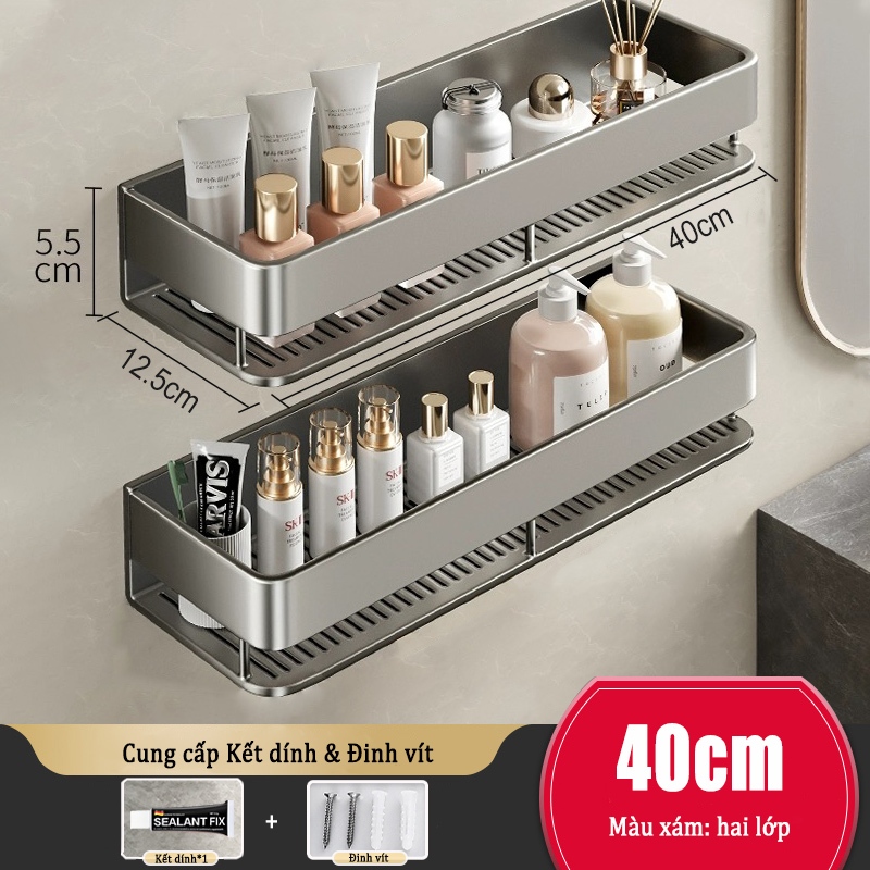 Kệ lưu trữ phòng tắm nhôm Giá lưu trữ mỹ phẩm / Kệ lưu trữ nhà bếp Giá đỡ phòng tắm treo tường không