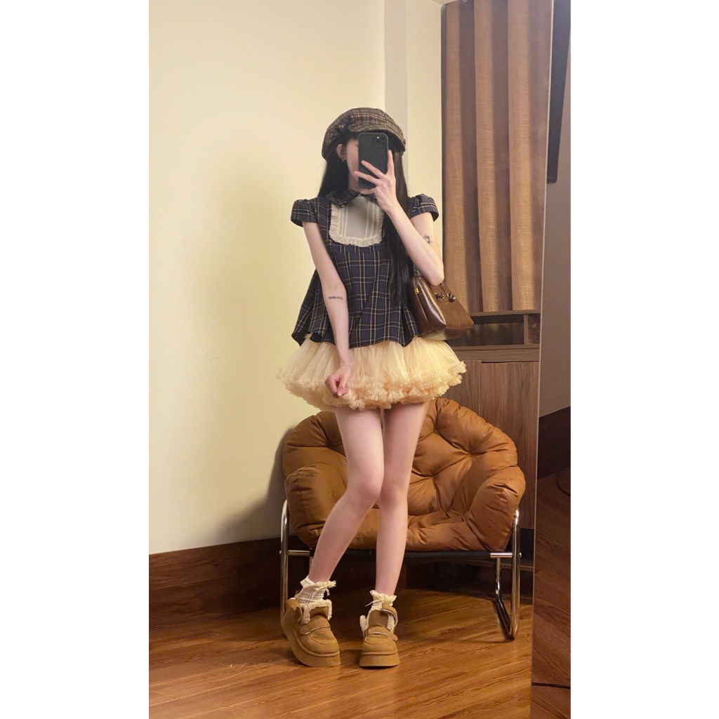 P256 - Chân váy tu tu 2 lớp voan tơ bồng nhún tầng xòe dáng ngắn lưng thun trendy 2025