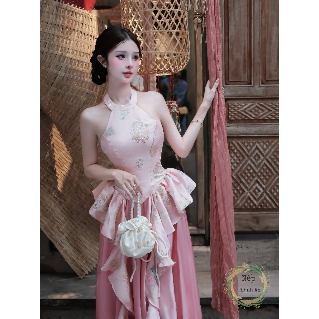P301 - Set yếm gấm tua rua họa tiết phối chân váy lụa Tết, yếm đỏ trung thu tiểu thư sang chảnh