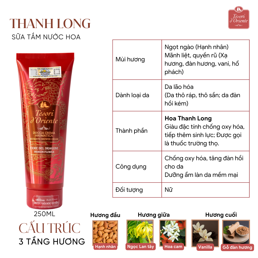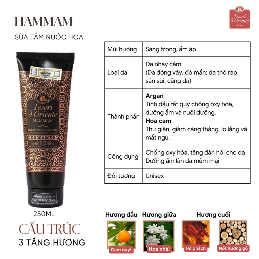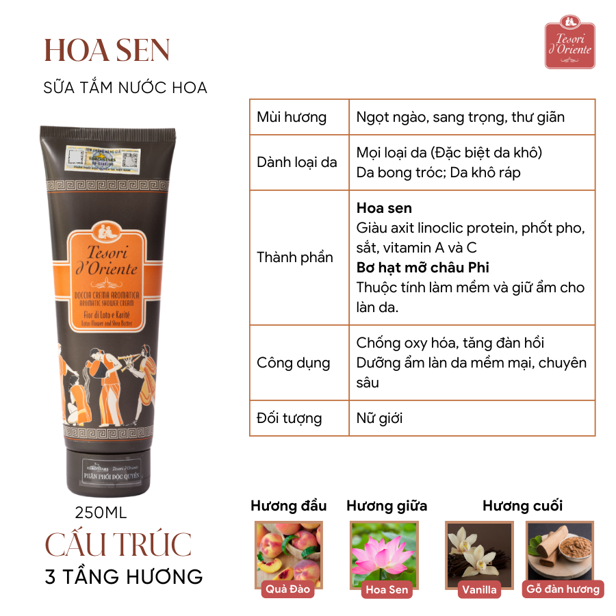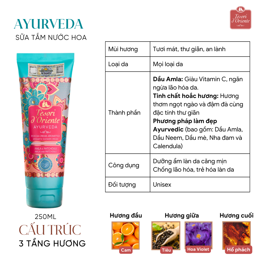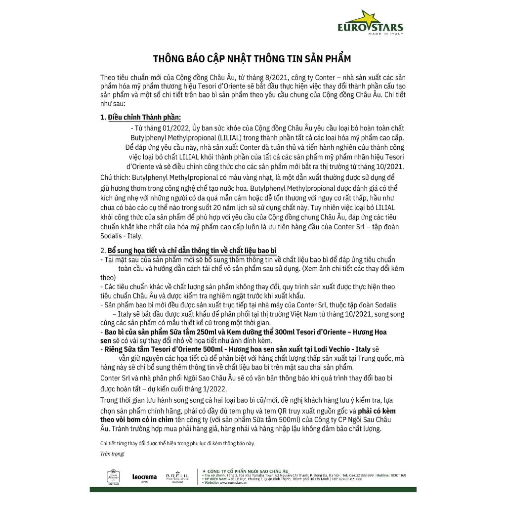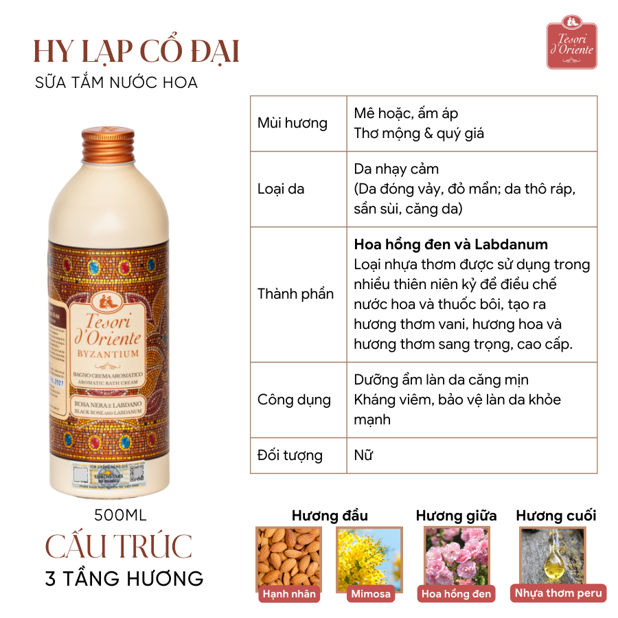 Sữa tắm nước hoa Tesori d'Oriente nhập khẩu chính hãng từ Ý 500ml/250ml/25ml - Dưỡng ẩm mịn da, lưu hương lâu đến 8H