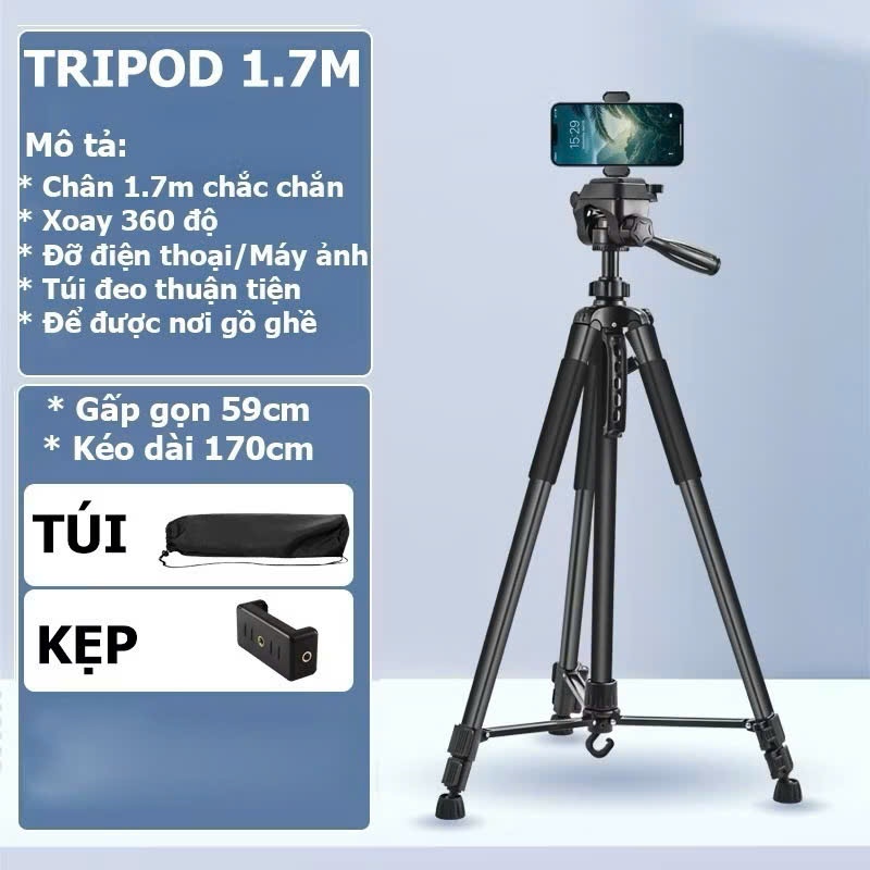 Chân Quay Máy Ảnh Điện Thoại Tripod 360 °,Tripod Điện Thoại - 💖𝑭𝑹𝑬𝑬 𝑺𝑯𝑰𝑷💖 - Đa Năng - Cao 60-170cm