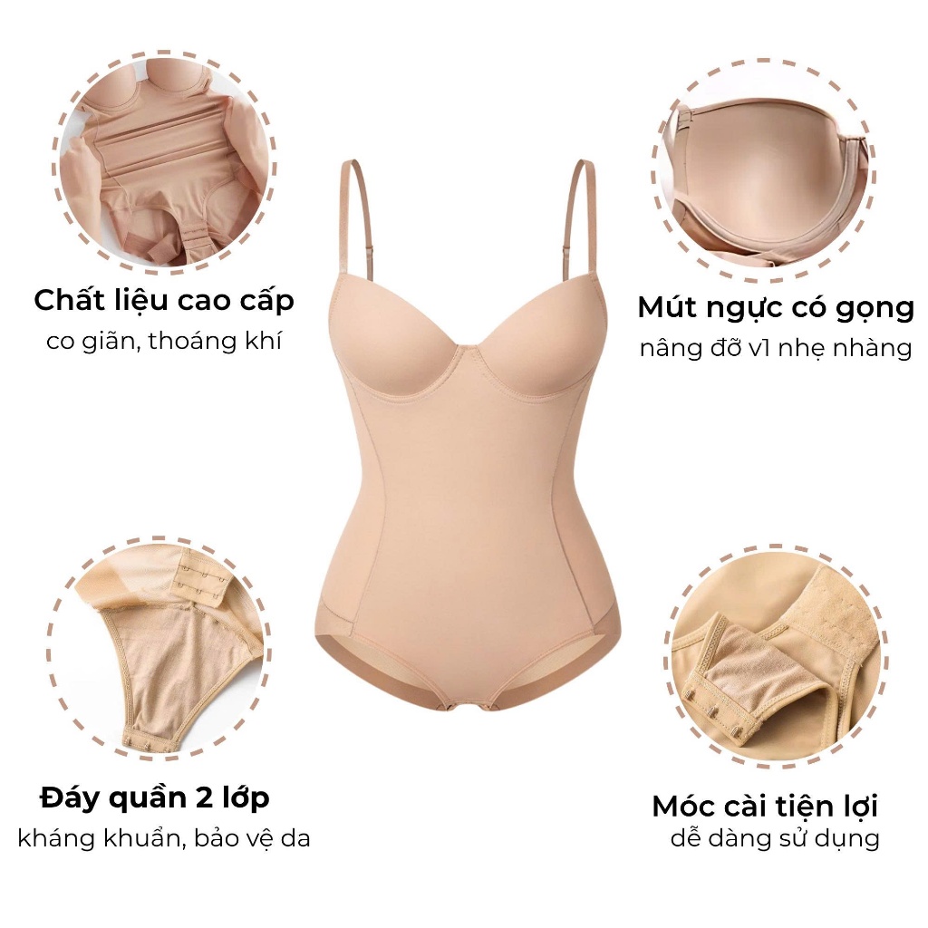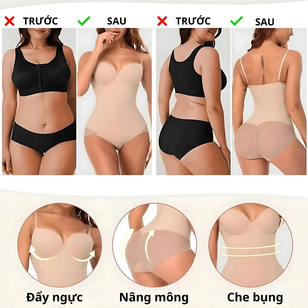 Áo Lót Body Suite Định Hình Cơ Thể Mút Ngực Cố Định Có Gọng Thép Siết Eo Nâng Mông Khoá Cài Trước Tiện Lợi 19624