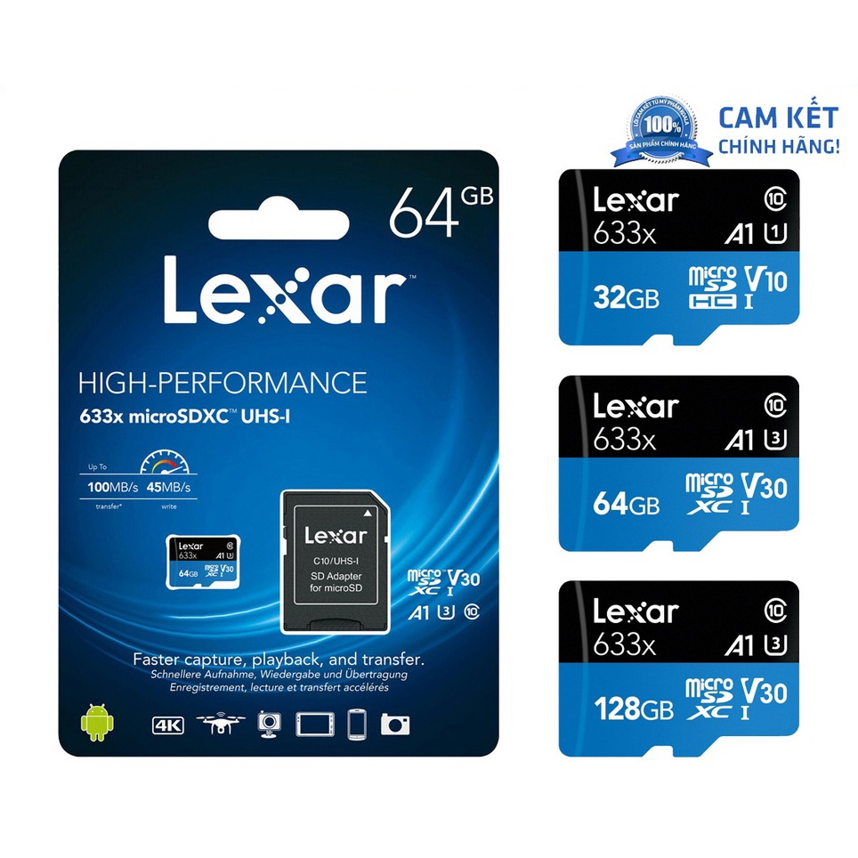 Thẻ Nhớ MicroSDXC KIOXIA EXCERIA,LEXAR 633x,BIWIN MS100 32GB/64GB/128GB/256GB class 10,tốc độ 100Mbp/s - Bảo hành 5 năm