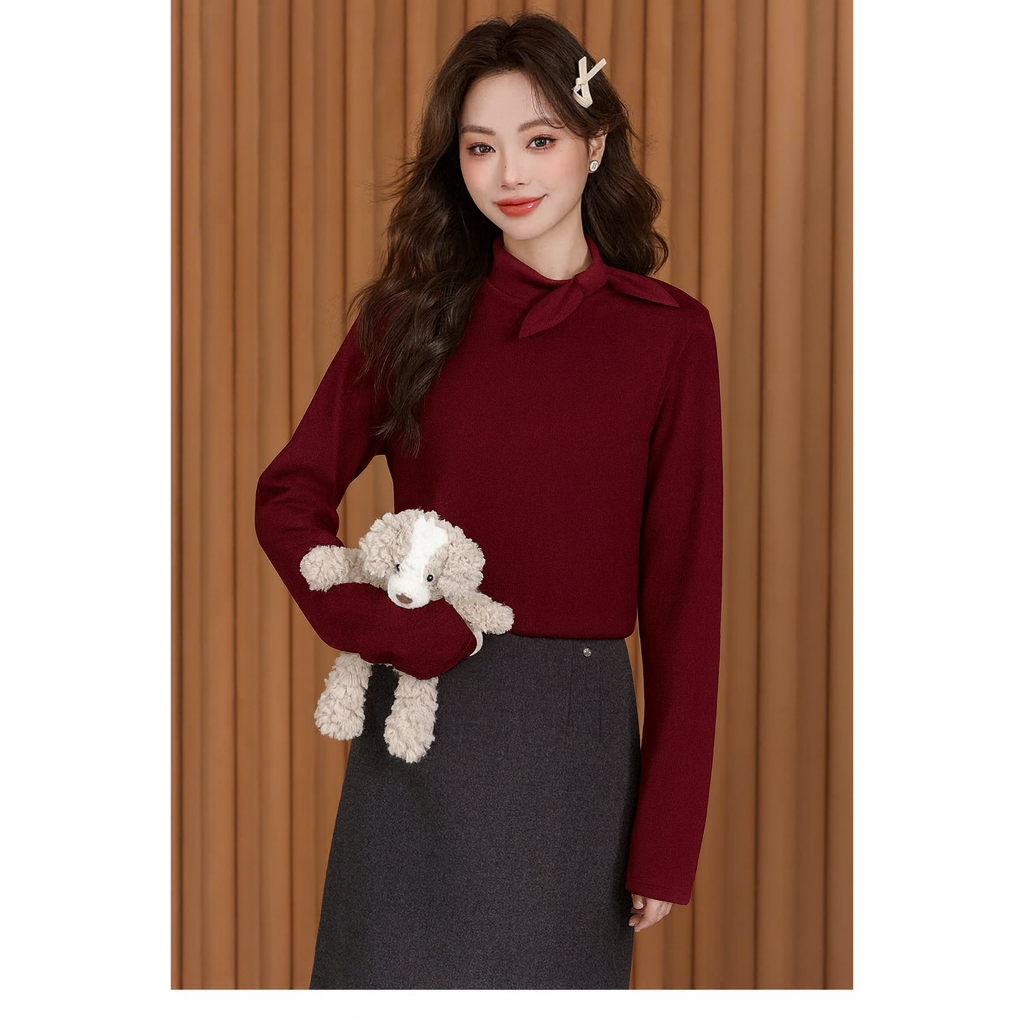 (Tri Ân 8/3) Áo thun Giữ Nhiệt Lông Thỏ Cổ Nơ Xinh Xắn T106 - T2 Fashion