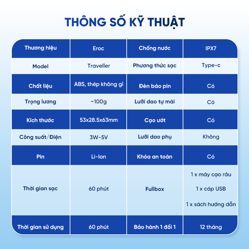 Máy cạo râu EROC Traveller KKXZ021 Mini Chống Nước IPX7, Lưỡi Tự Mài, Sạc Nhanh Type-C (Nhiều Màu)