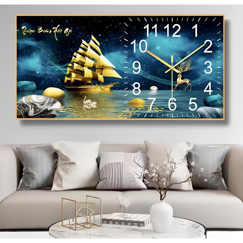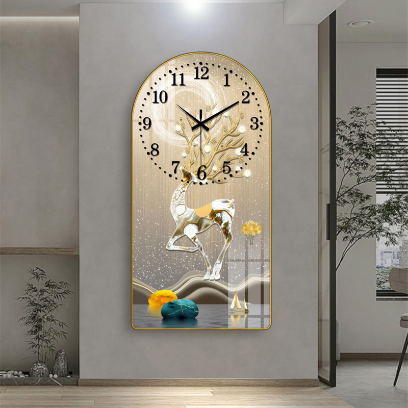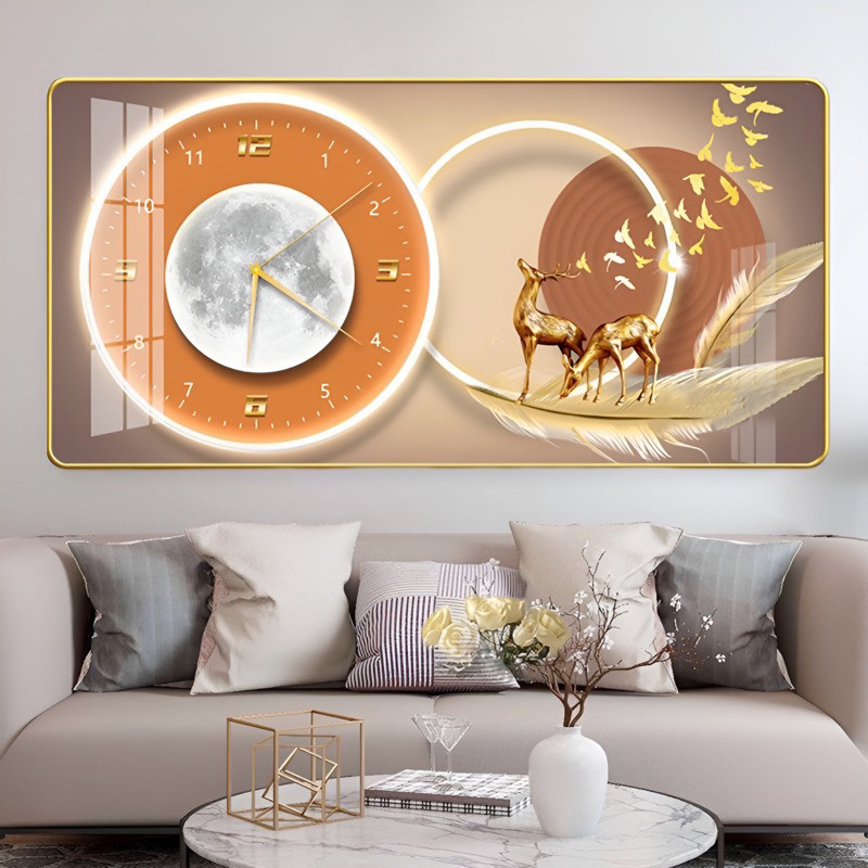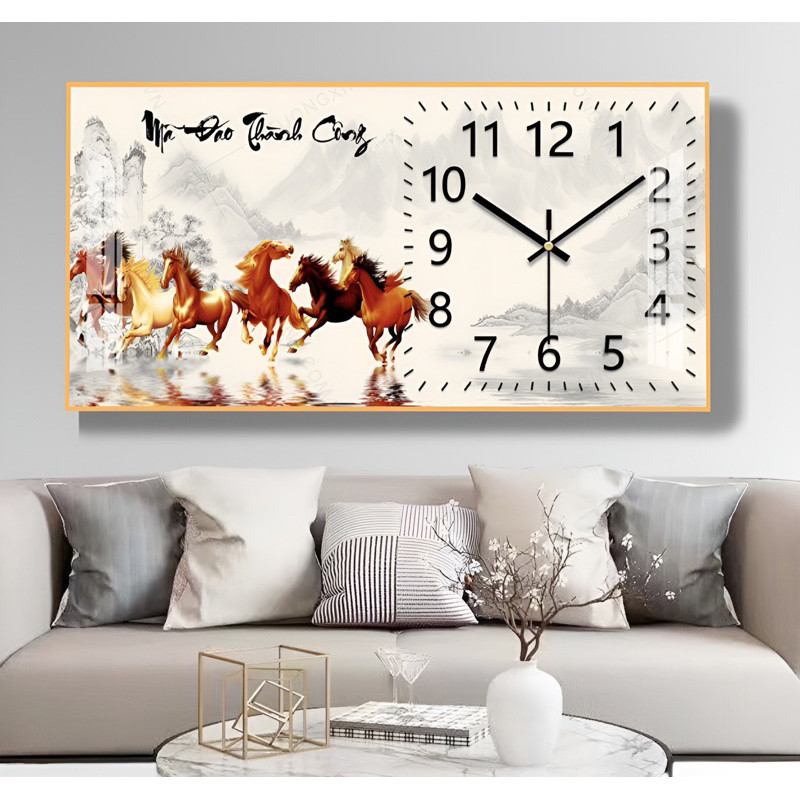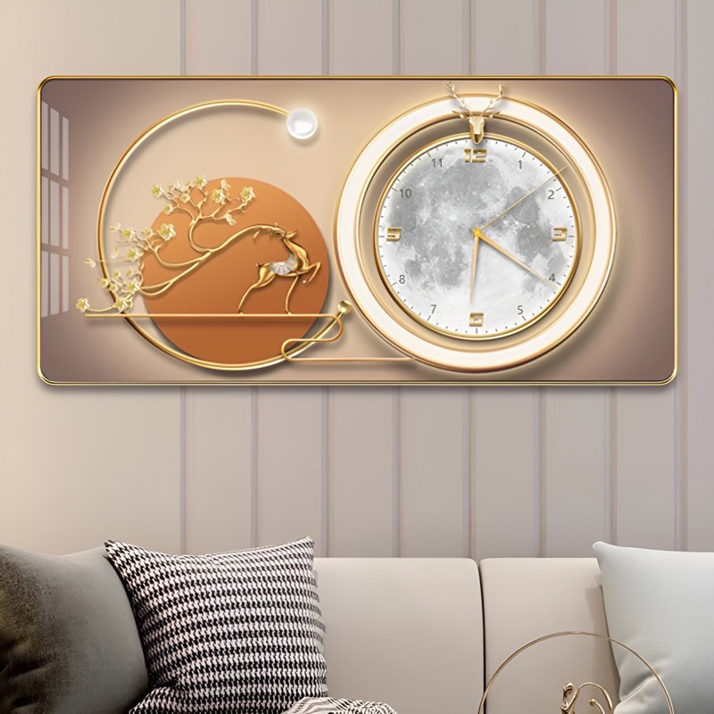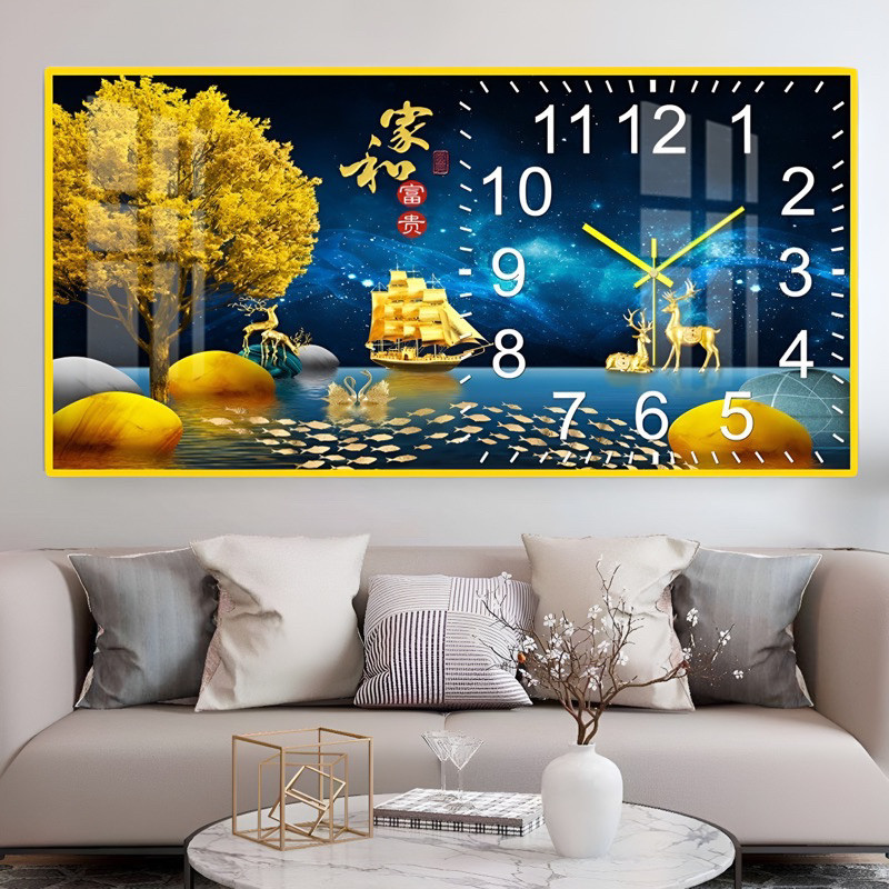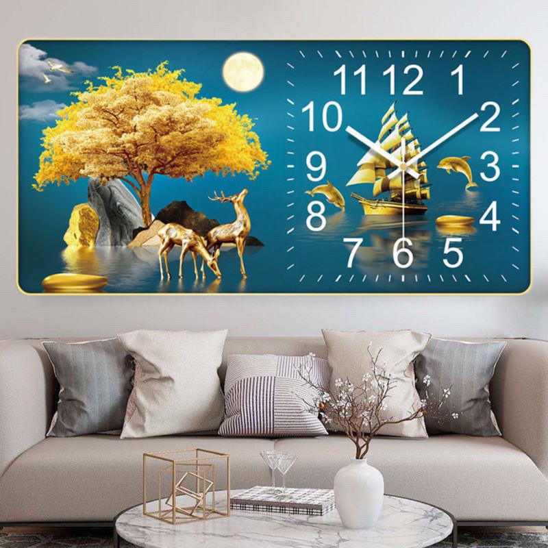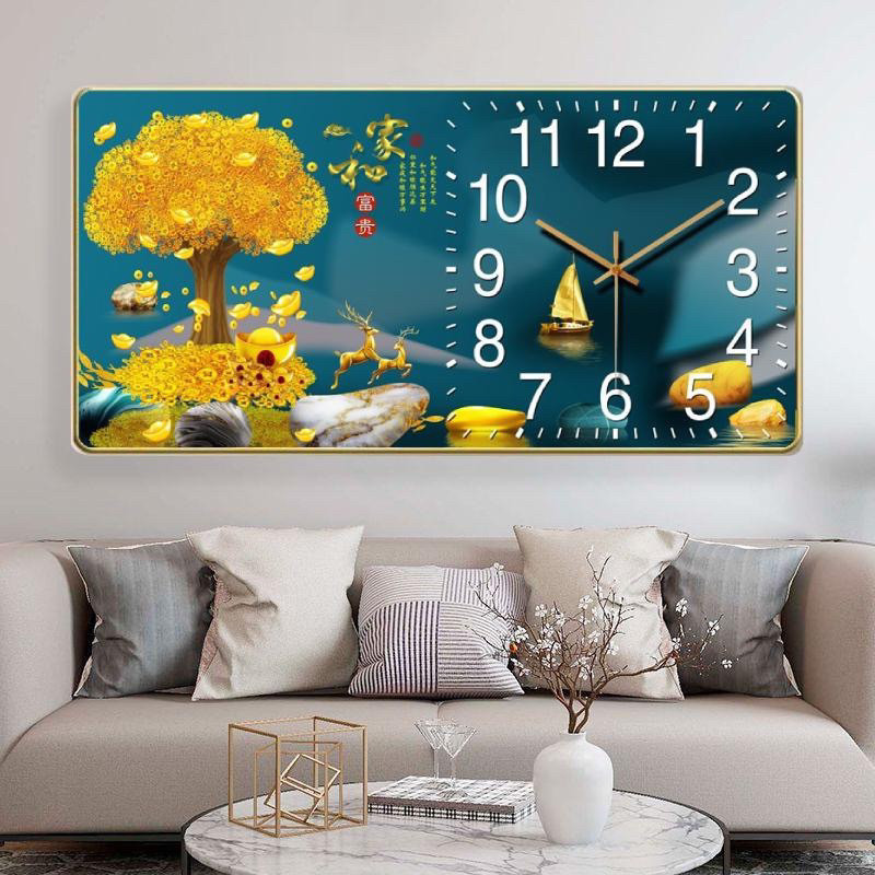 Đồng Hồ Tráng Gương KIM TRÔI "HƯƠU PHÚ QUÝ TÀI LỘC" In UV 5D Cao Cấp - Trang Trí Nhà Cửa.