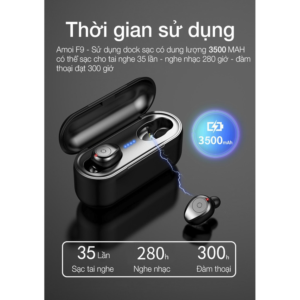 Tai nghe Bluetooth AMOI F9 nút cảm ứng Bluetooth 5.0 Pin 280 giờ tích hợp sạc dự phòng 1 đổi 1 trong 6