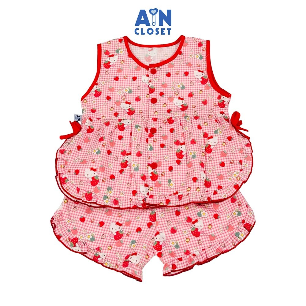 Bộ quần áo Ngắn bé gái họa tiết Mèo Dâu Đỏ Cotton - AICDBGODOHEO - AIN Closet