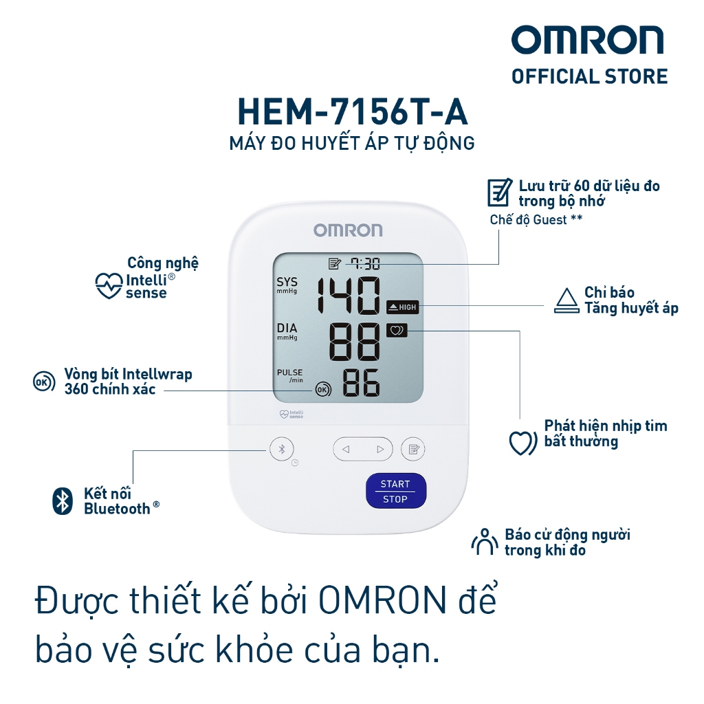 Máy Đo Huyết Áp OMRON HEM-7156T-A Chính Hãng - Kết Nối Điện Thoại - IntelliSense
