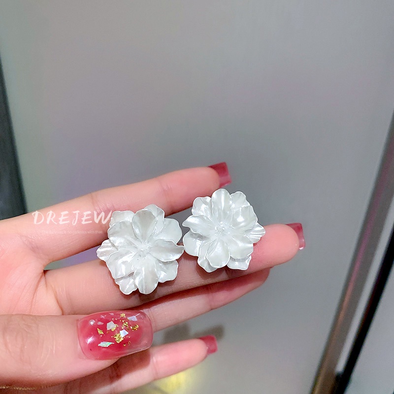 DREJEW Khuyên tai hình hoa trà bằng nhựa resin bạc 925 phong cách Nhật Hàn độc đáo thời trang