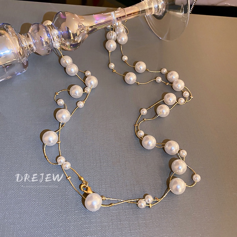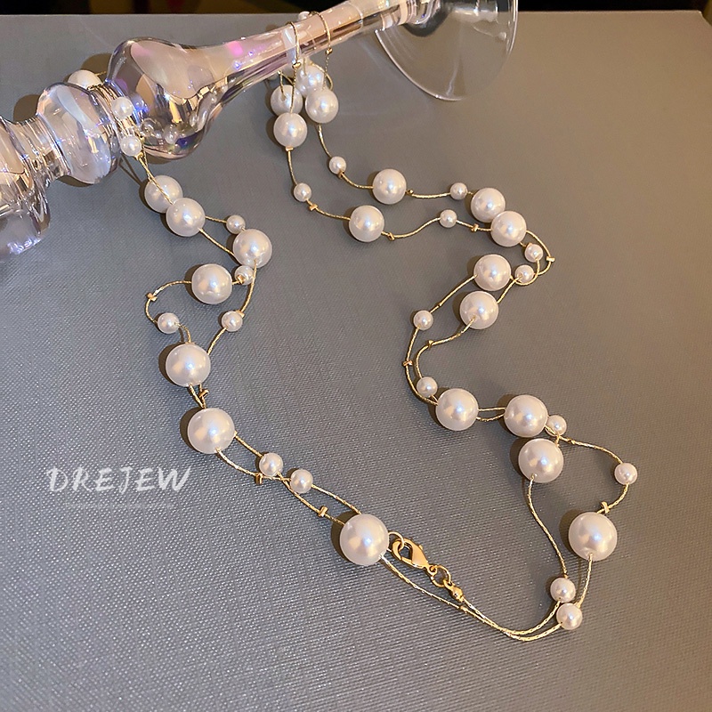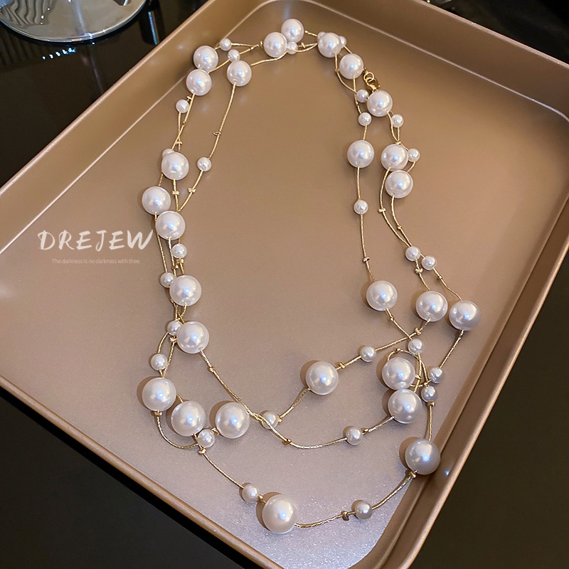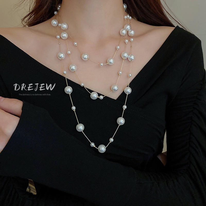 DREJEW Dây chuyền ngọc trai dài thời trang Hàn Quốc áo len mùa thu đông mới vòng cổ nữ