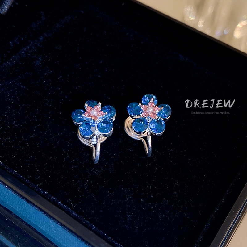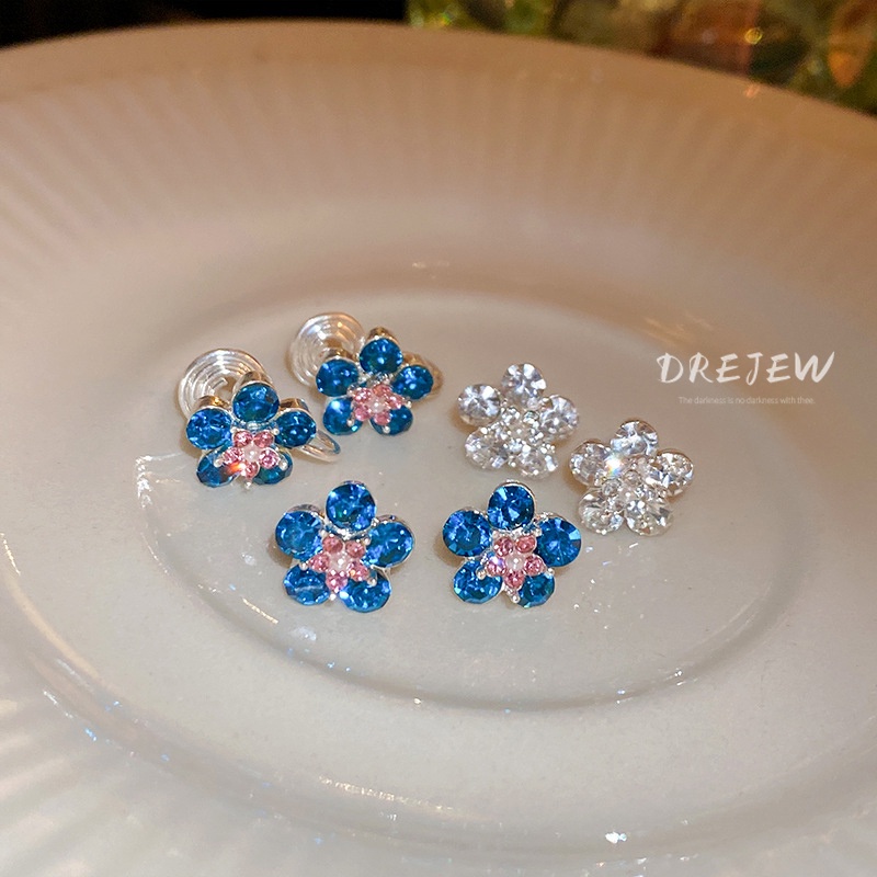 DREJEWsilver kim cương dát bông tai hoa thời trang Mori khí chất bông tai cá tính thiết kế thích hợp bông tai mới