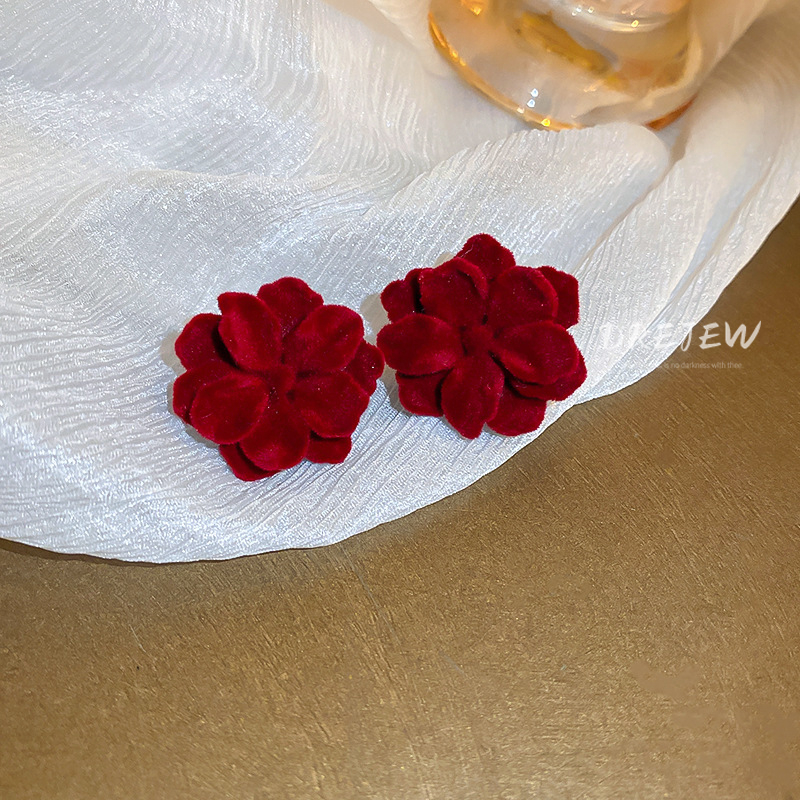 DREJEW Khuyên tai mạ bạc hình hoa thời trang thu đông phong cách Pháp cổ điển cho nữ