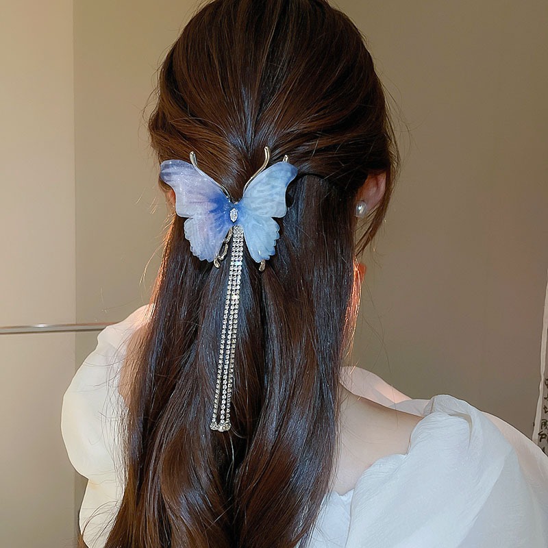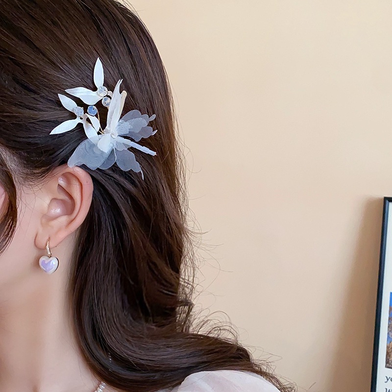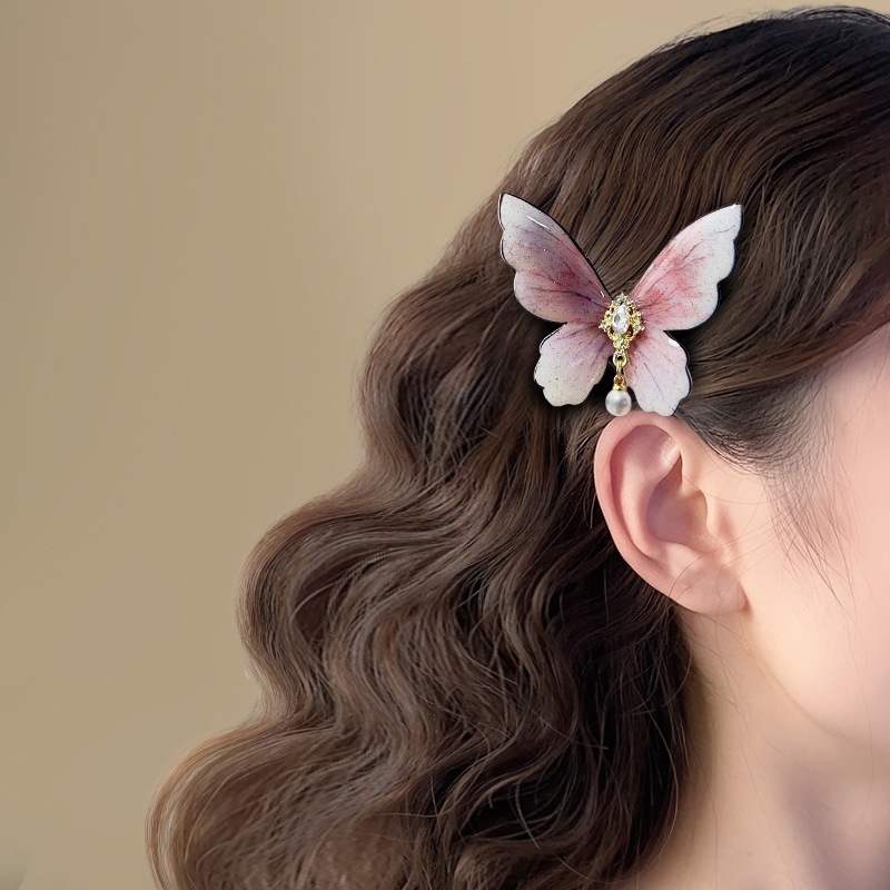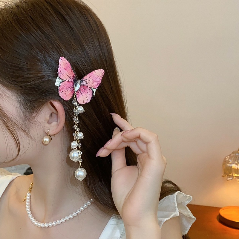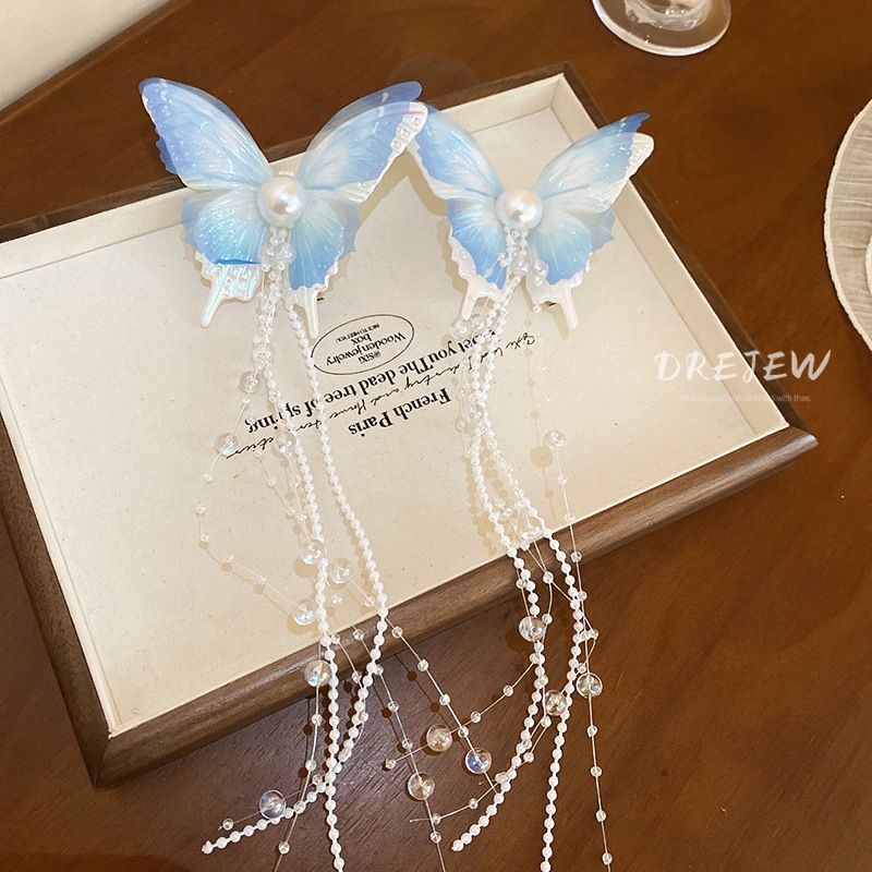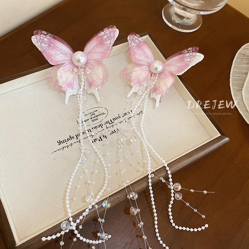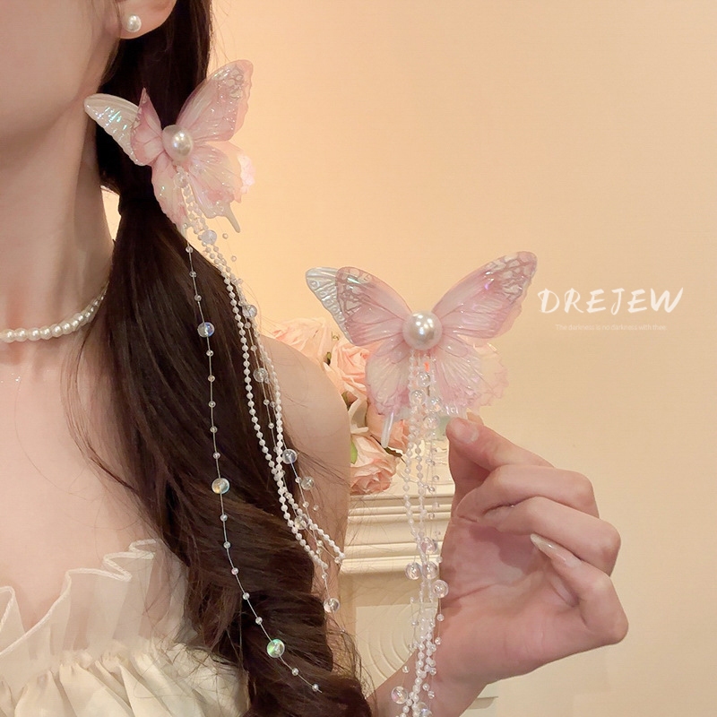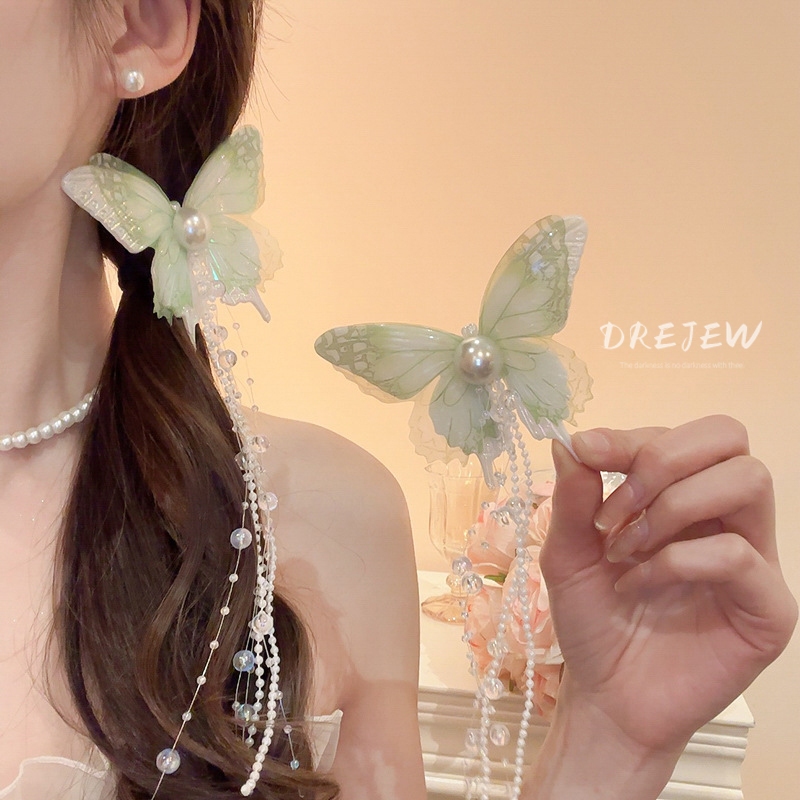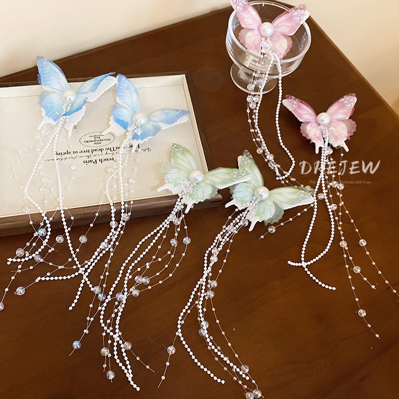 Drejew Bướm lưới tua rua ngọc trai nhân tạo kẹp tóc mỏ vịt kẹp thời trang đa năng phụ kiện tóc
