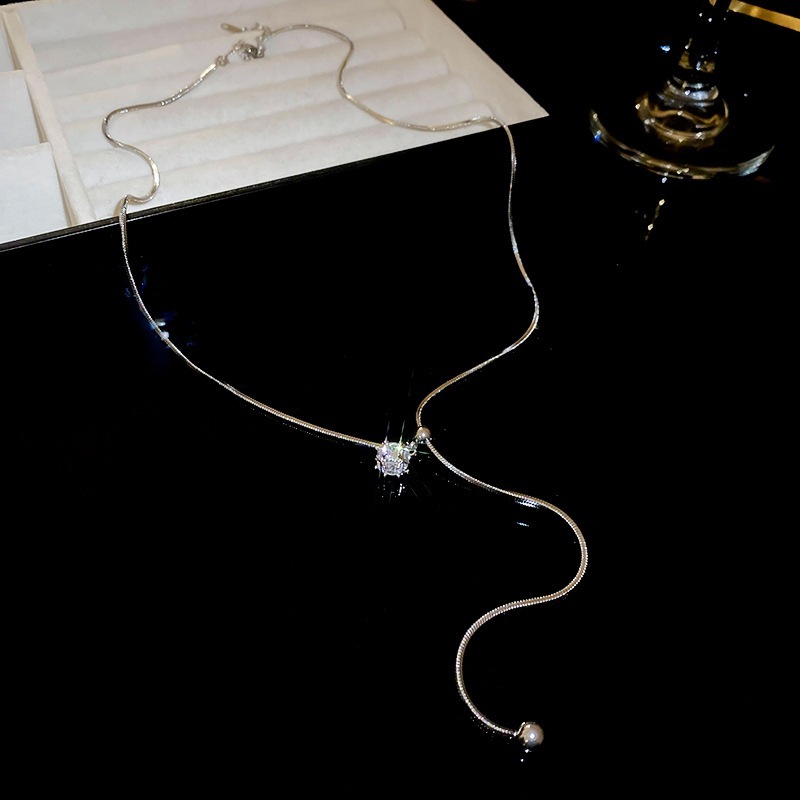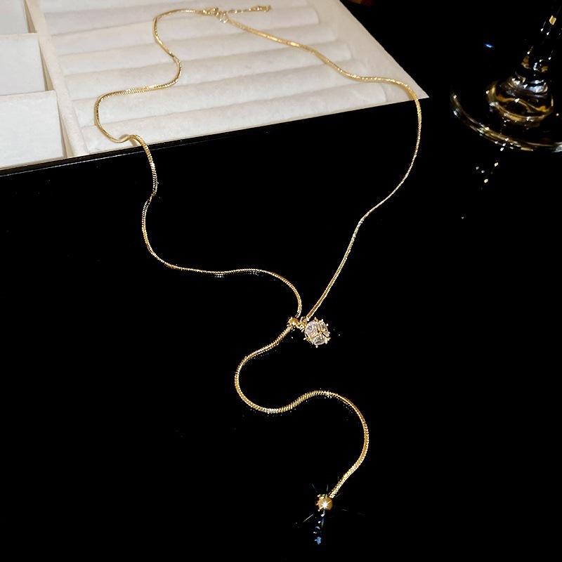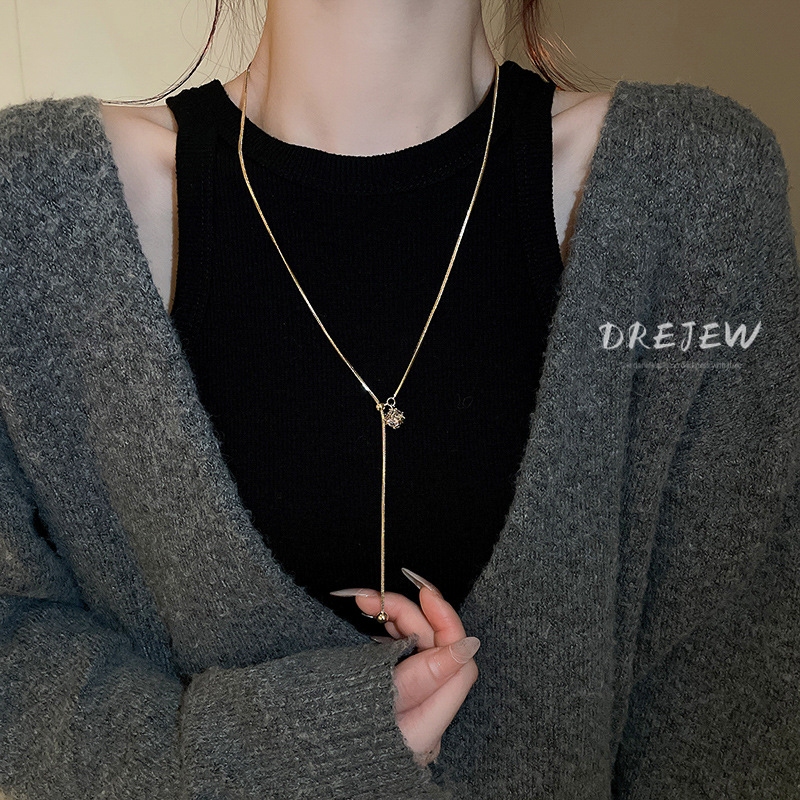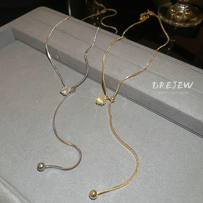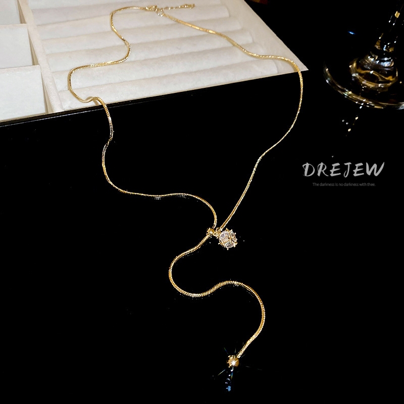DREJEW Real mạ điện vuông zircon bóng có thể điều chỉnh vòng cổ nhẹ sang trọng dây chuyền áo len