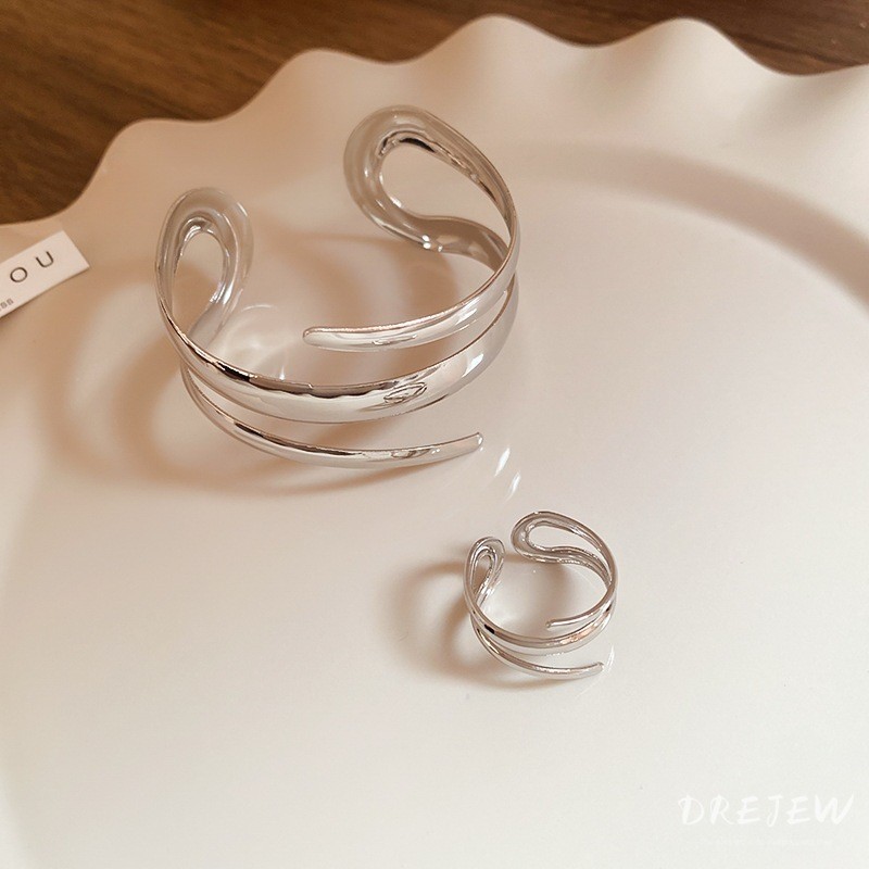 [Drejew] 2 chiếc vòng đeo tay hình học mặt rộng hình học châu Âu và Mỹ Bộ trang sức thời trang cá tính