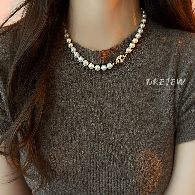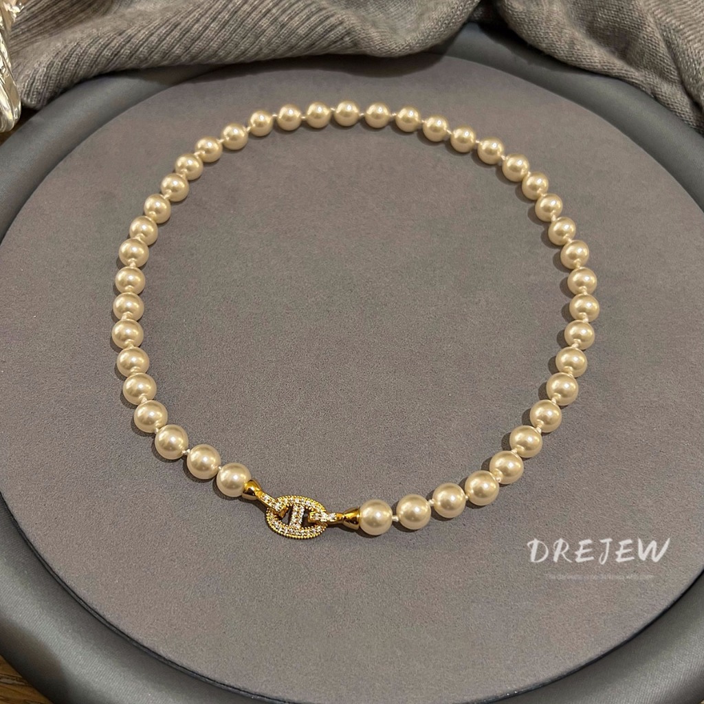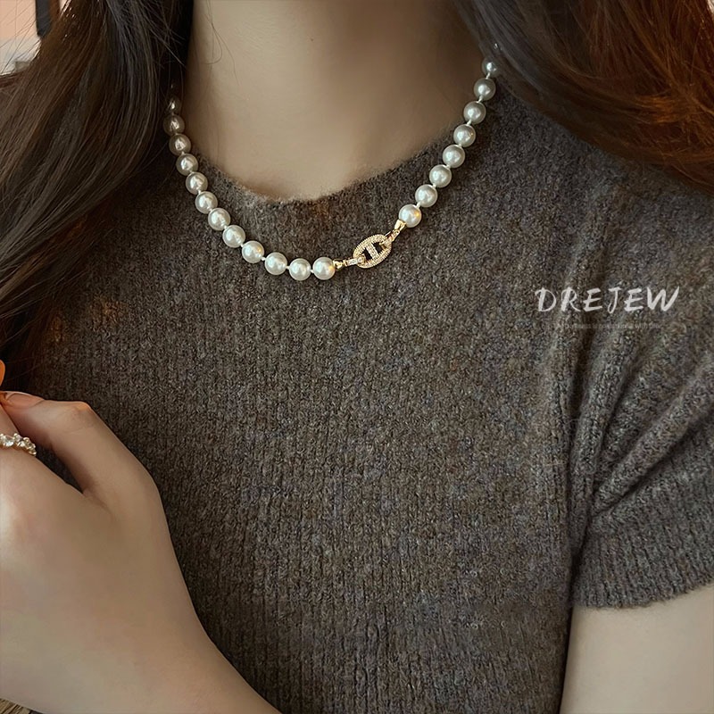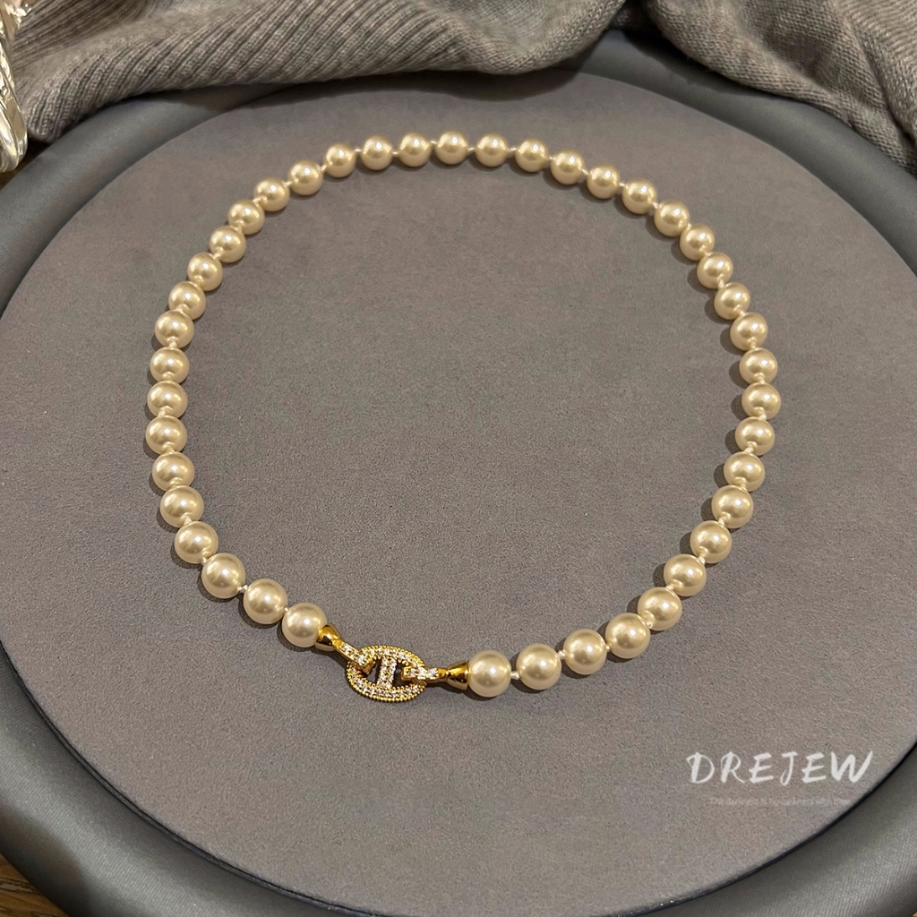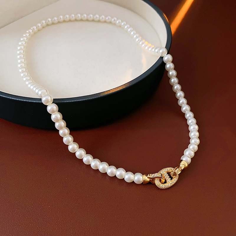 Drejew Hình bầu dục Zircon Pig Mũi nhẹ Vòng cổ ngọc trai nhân tạo sang trọng