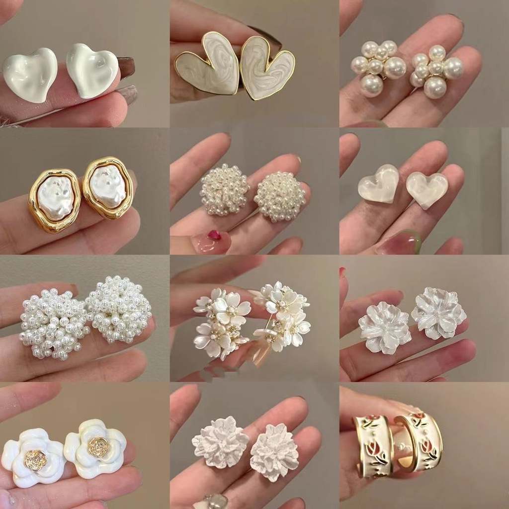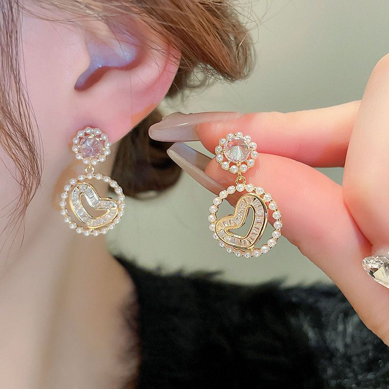 DREJEW Kim Bạc Hoa Pháp Tình Yêu Nhân Tạo Bông Tai Ngọc Trai Thanh Lịch Cao Cấp retro Bông Tai