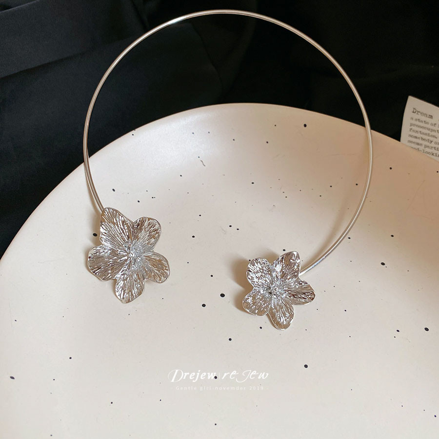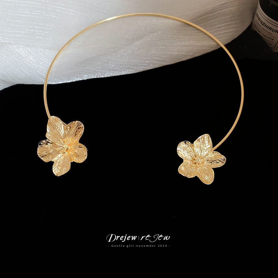 DREJEW Vòng cổ hoa kim loại phong cách Châu Âu và Mỹ Vòng cổ sang trọng nhẹ nhàng