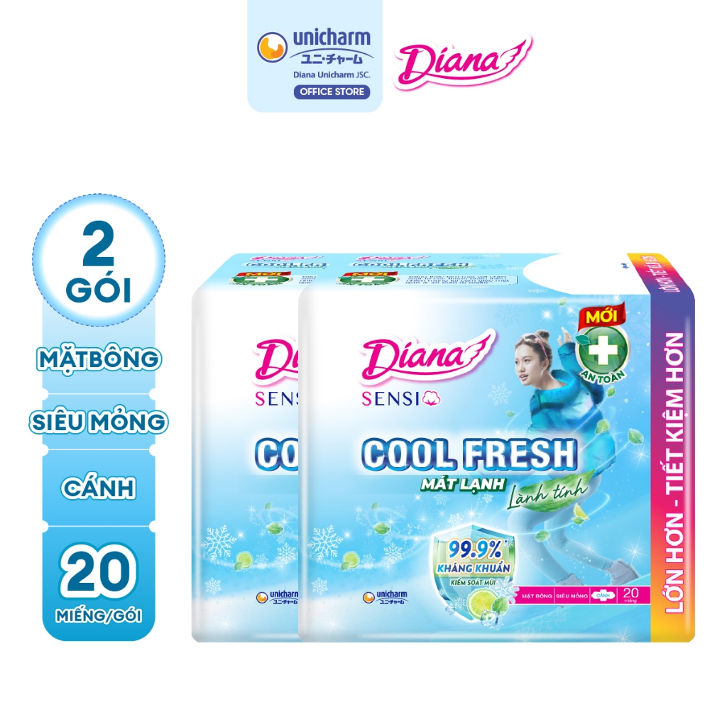 Bộ 2 băng vệ sinh Diana Sensi Cool Fresh siêu mỏng cánh gói 20 miếng