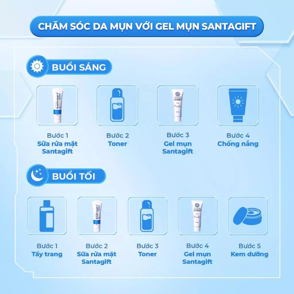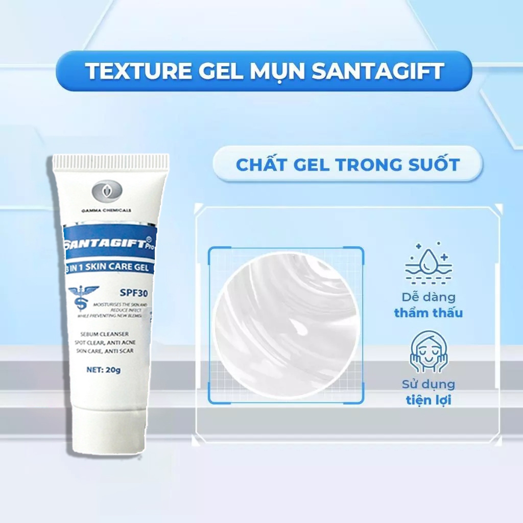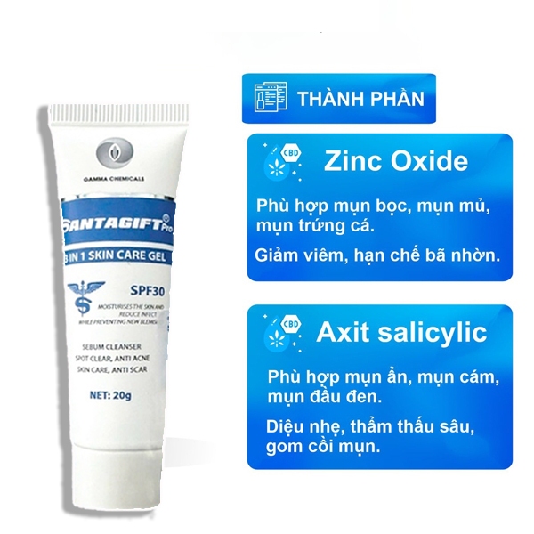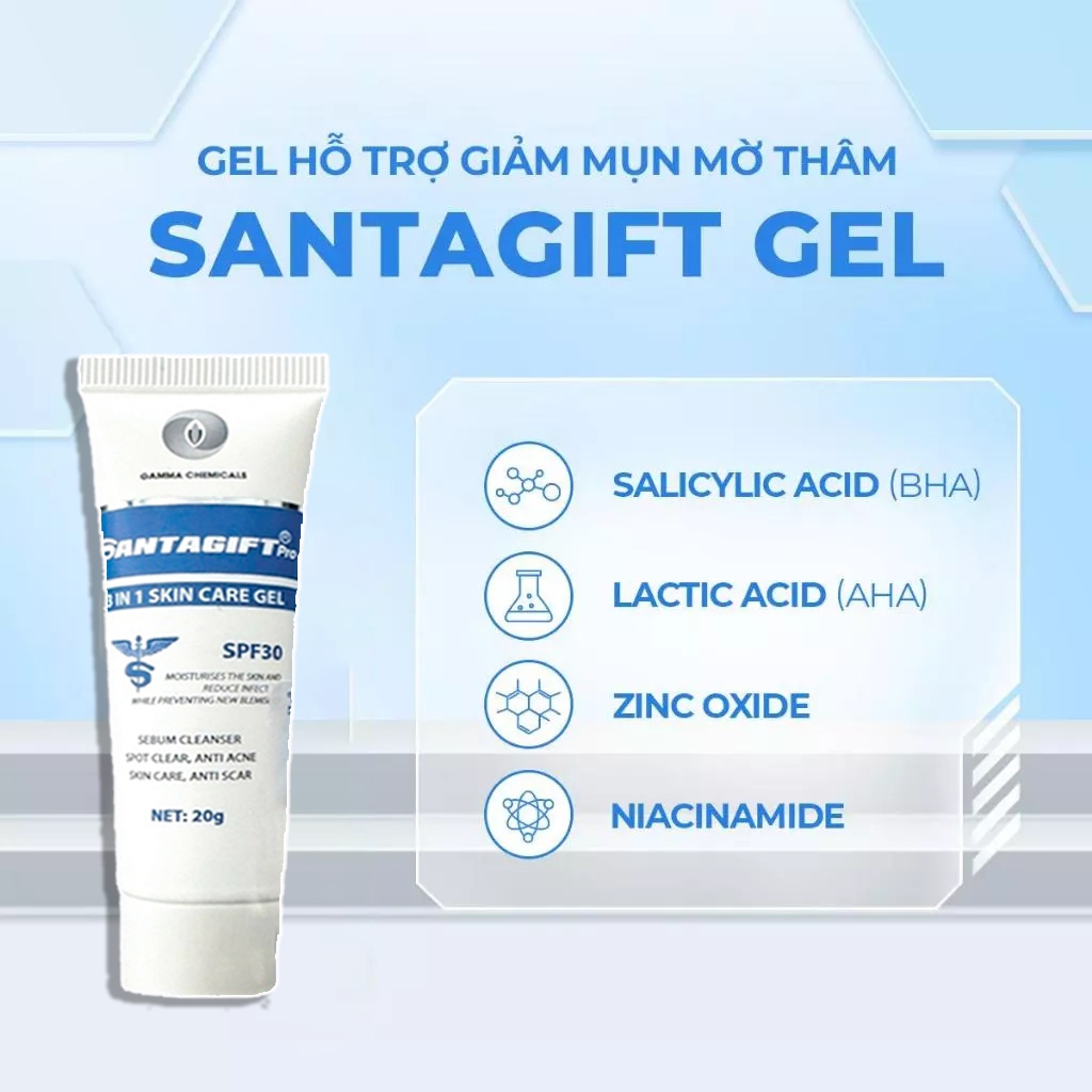 Kem Mụn SANTAGIFT Gel Giảm Mụn ẩn Trứng Cá chấm mụn Ngừa Thâm Mờ Sẹo Dưỡng Da Trắng sáng chống nắng