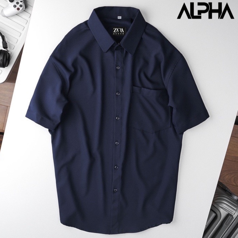 Áo Sơ Mi Nam Trơn Tay Ngắn Một Túi GEN ALPHA Full Collor Slim Fit Silkly Thanh Lịch