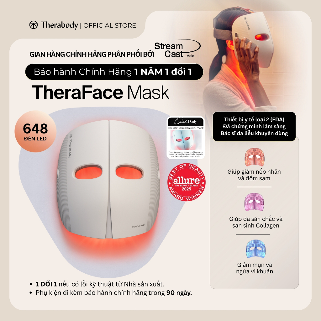 THERABODY Mặt Nạ Massage Ánh Sáng Sinh Học TheraFace Mask, Trị Liệu 648 LED_Bảo hành 12 Tháng