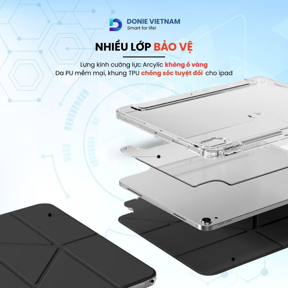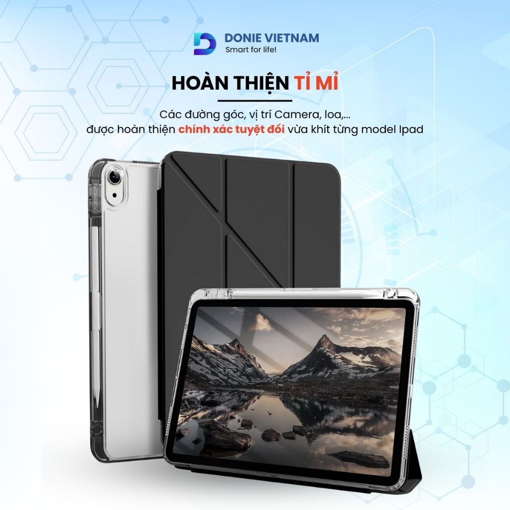 [Tặng Sticker] Bao Da iPad Chân Đế Chữ Y CrystalShield DonieVietnam Kèm Khay Bút Đủ Dòng Gen 10/11 Air 6/7 & Pro 11 P03