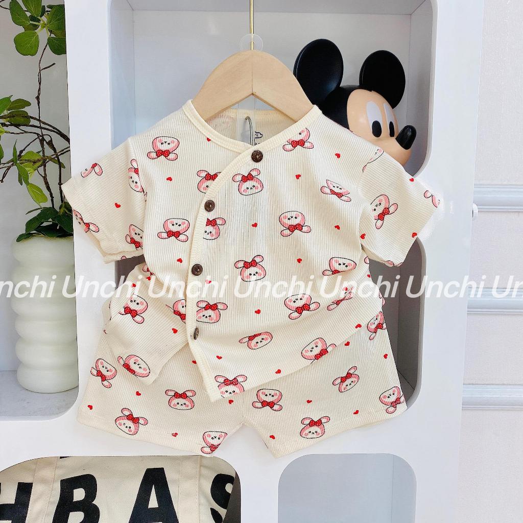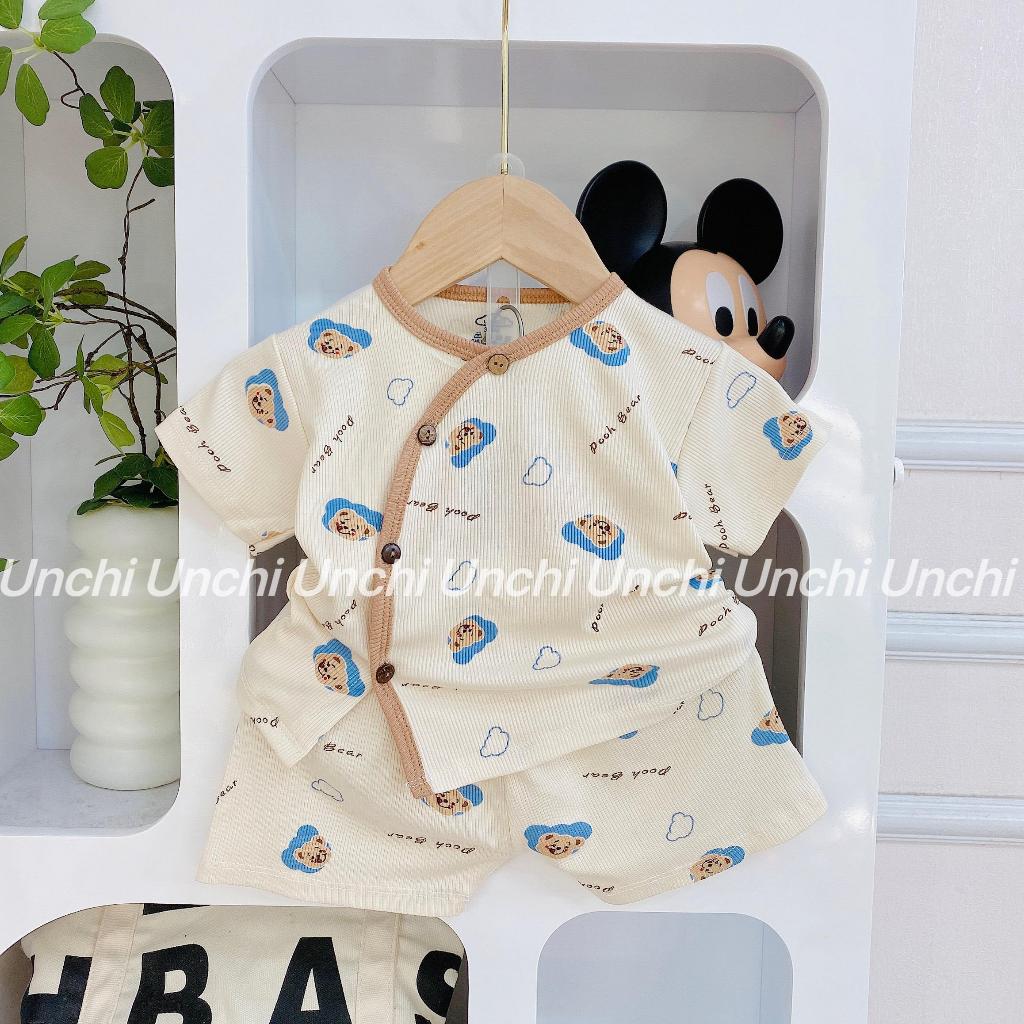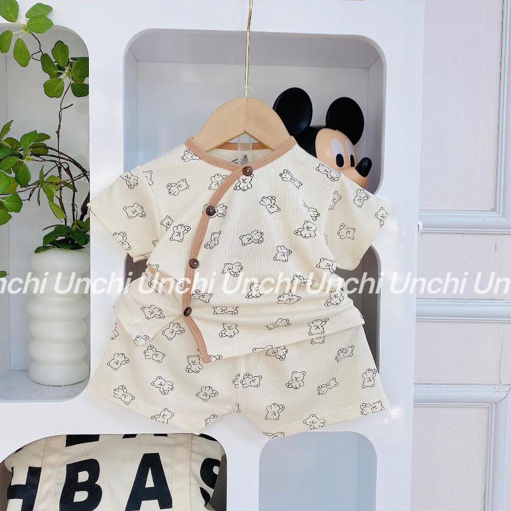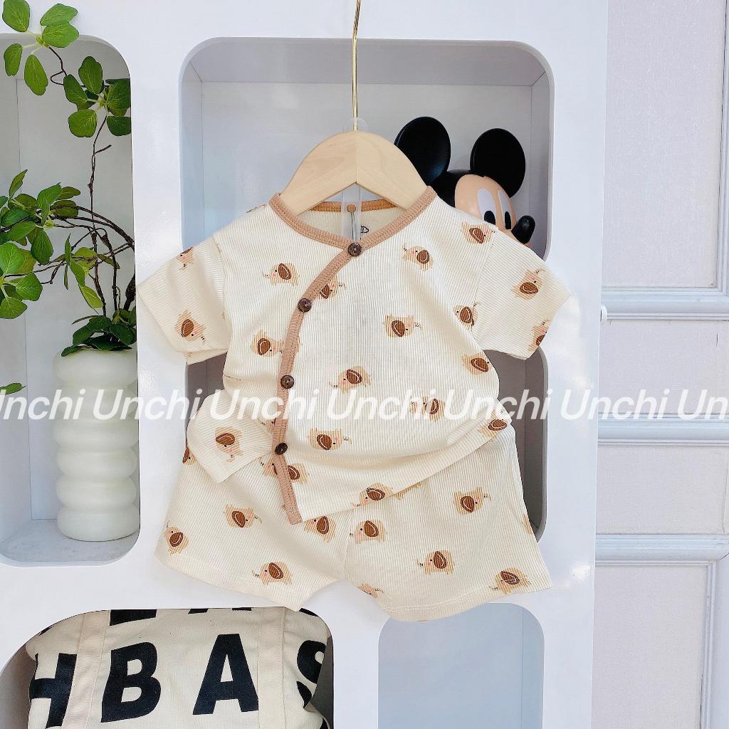 Bộ quần áo cộc tay thun tăm co dãn cho bé Unchi cú đeo chéo