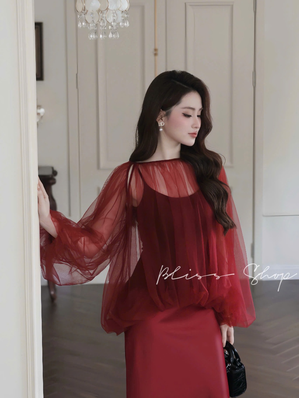[Thiết Kế Cao Cấp] Set Áo Lưới Phối Áo 2 Dây Co Giãn Mix Chân Váy Lụa Thanh Lịch Sang Trọng Dự Tiệc Bliss Shop - S581