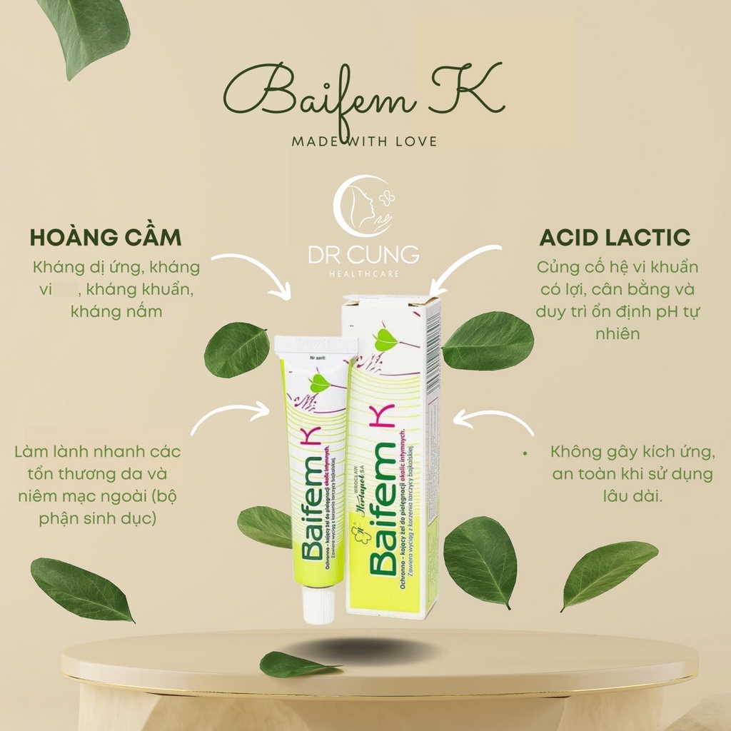 Baifem K - Gel Dưỡng Ẩm Hoàng Cầm, Bảo vệ, Dịu Nhe (Tuýp 15g)