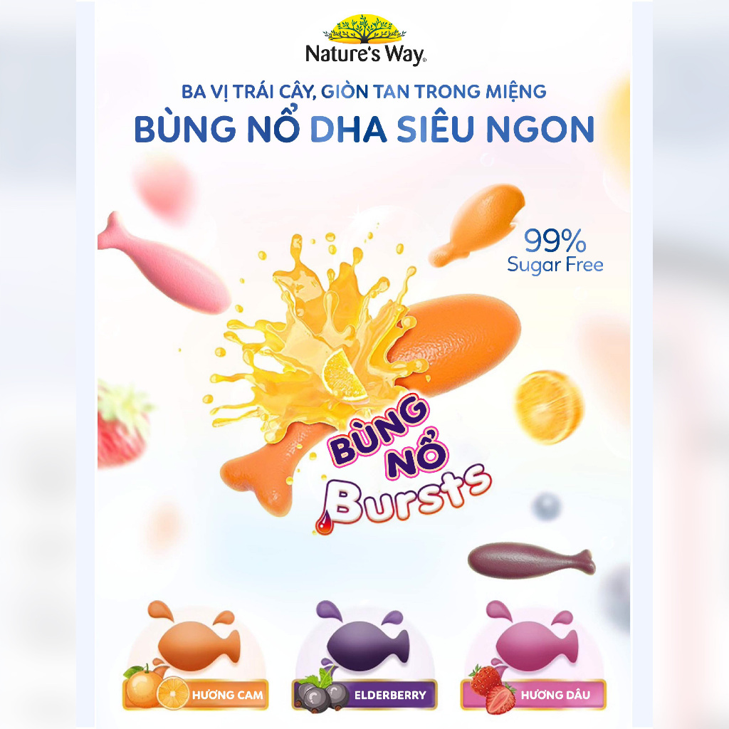 Viên Nhai Nature's Way Kids Smart Omega-3 Fish Oil Trio Cho Bé Hỗ Trợ Tốt Cho Mắt và Não Bộ 60 Viên