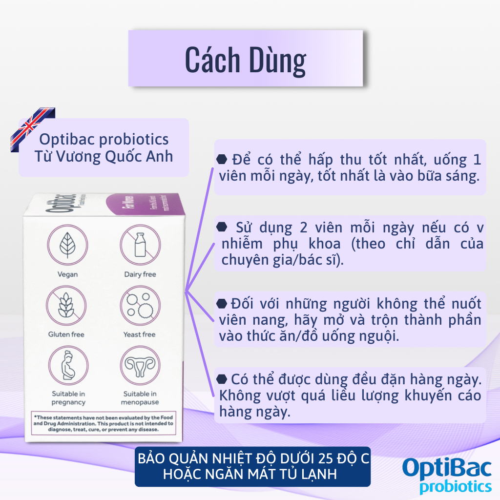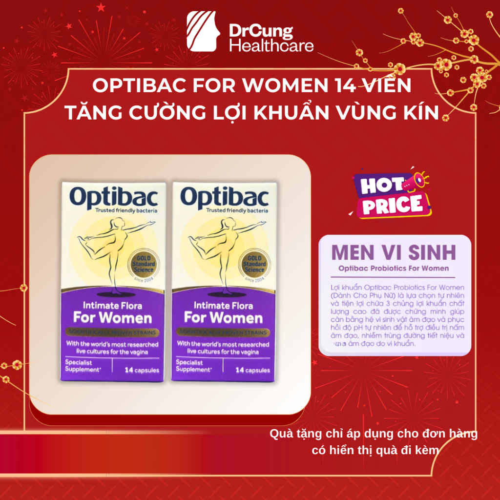 COMBO 2 HỘP Men Vi Sinh Phụ Khoa Optibac Tím 14 Viên - Men Vi Sinh Bổ Sung Lợi Khuẩn