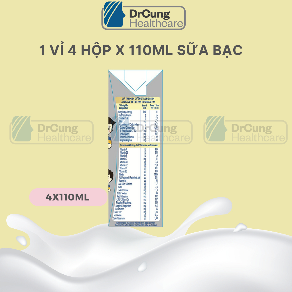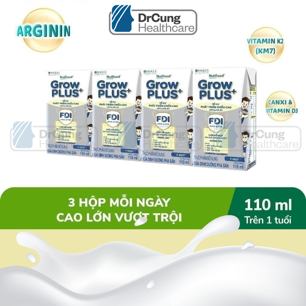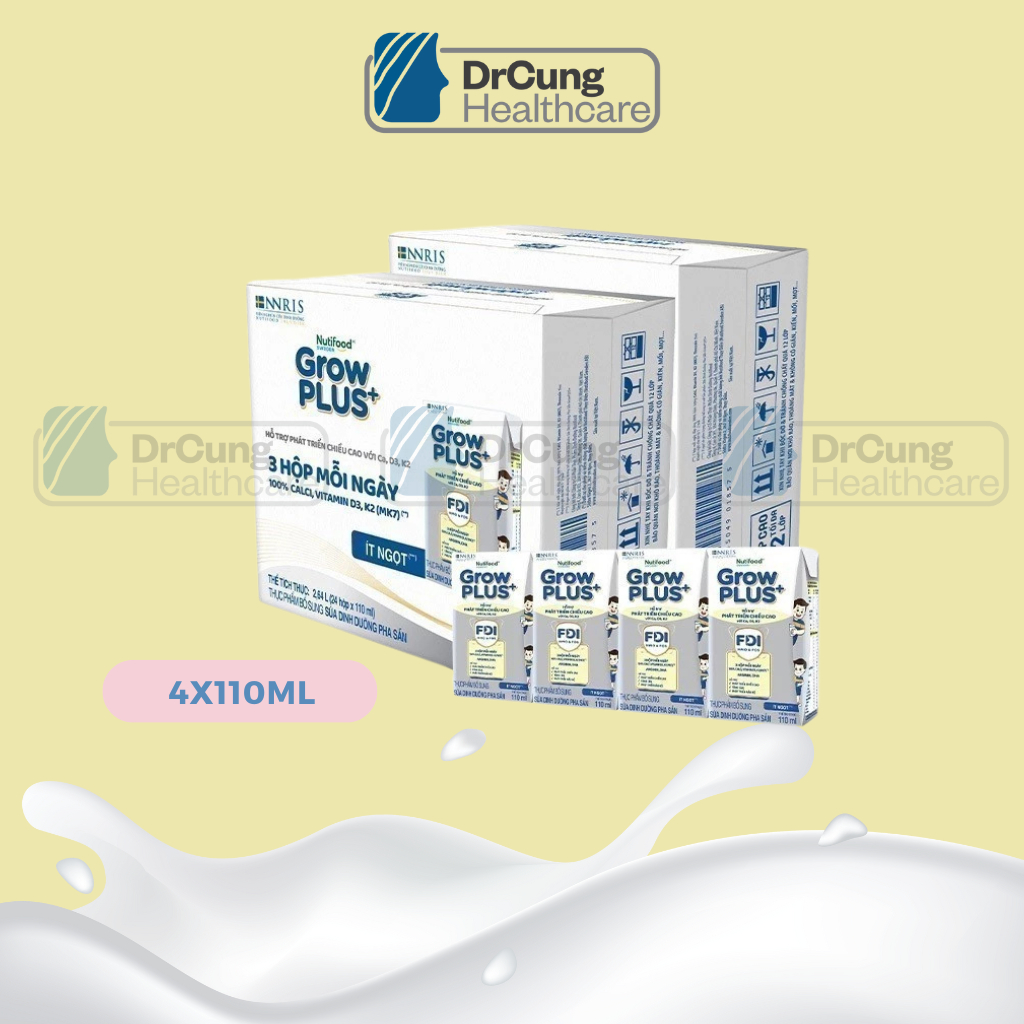 1 Thùng GROW BẠC 48 Hộp 110ml Sữa Dinh Dưỡng Nutifood GrowPLUS+ Cao Lớn Vượt Trội Hộp (Tổng 48 hộp x 110ml)