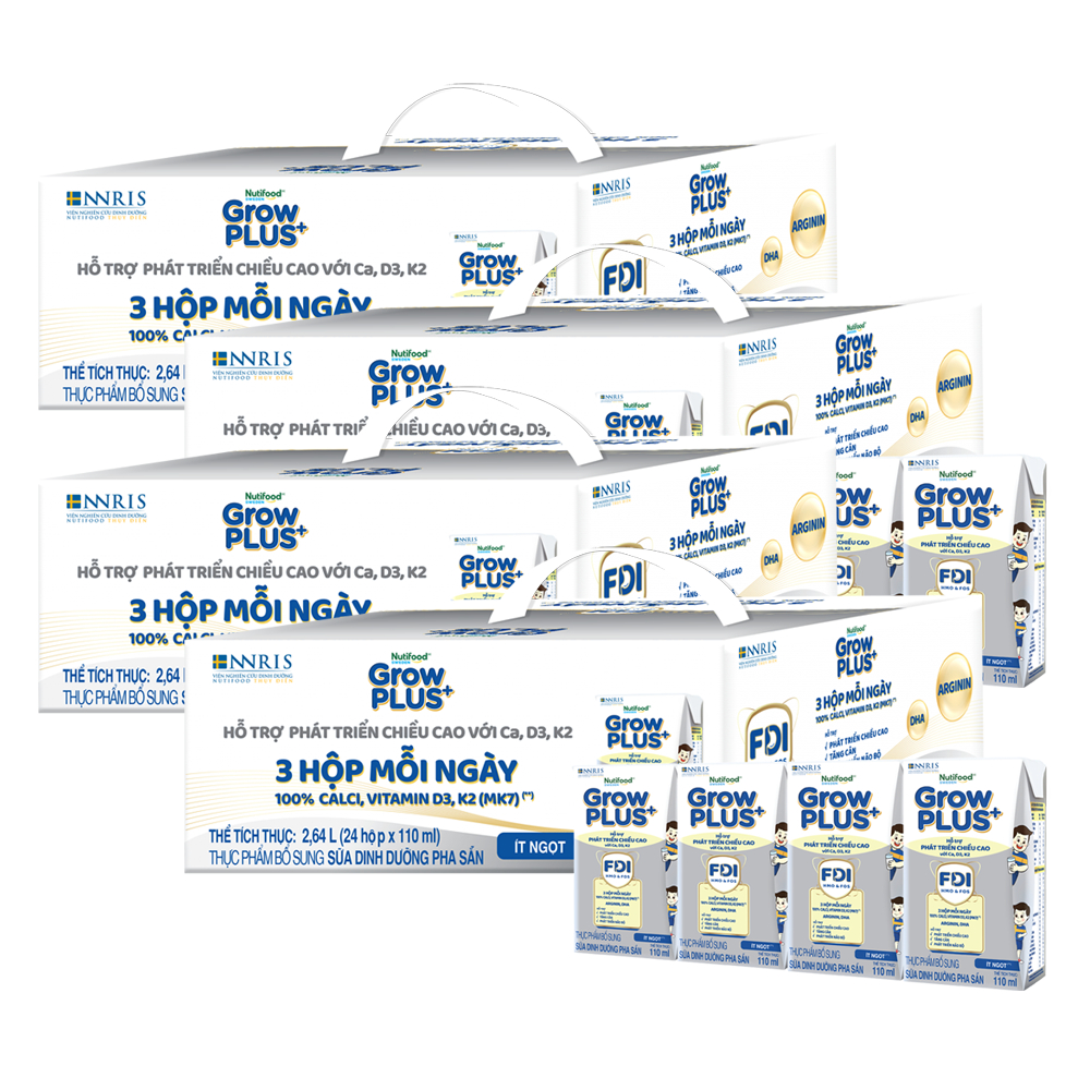 Combo 4 Thùng (GROW BẠC) 24 Hộp 110ml (96Hx110ml) Sữa Dinh Dưỡng Nutifood GrowPLUS+ Cao Lớn Vượt Trội